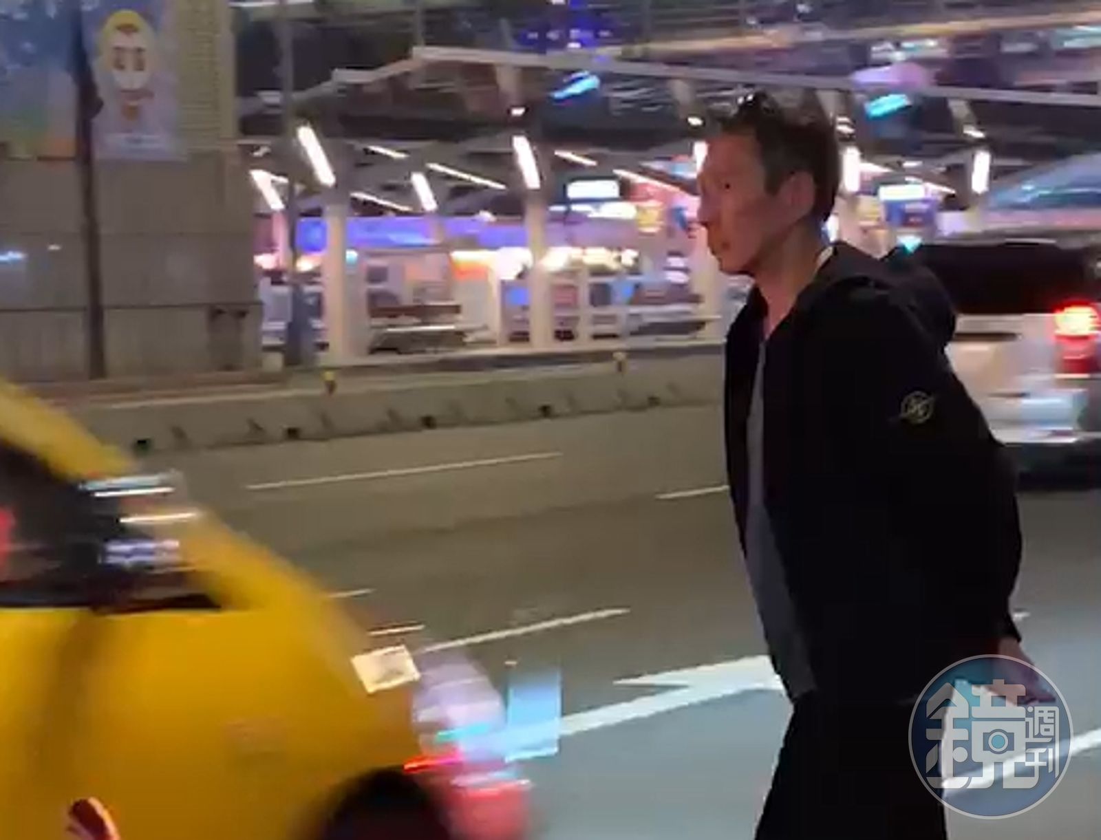 昨天(19日)是元宵節,晚間台北燈節紛紛湧入大批民眾看花燈,有民眾在北門光雕展附近,捕獲到野生的豆導鈕承澤,他全身黑衣裝扮,手上僅拿著電子菸和手機,快步穿梭在看花燈的人群之中。