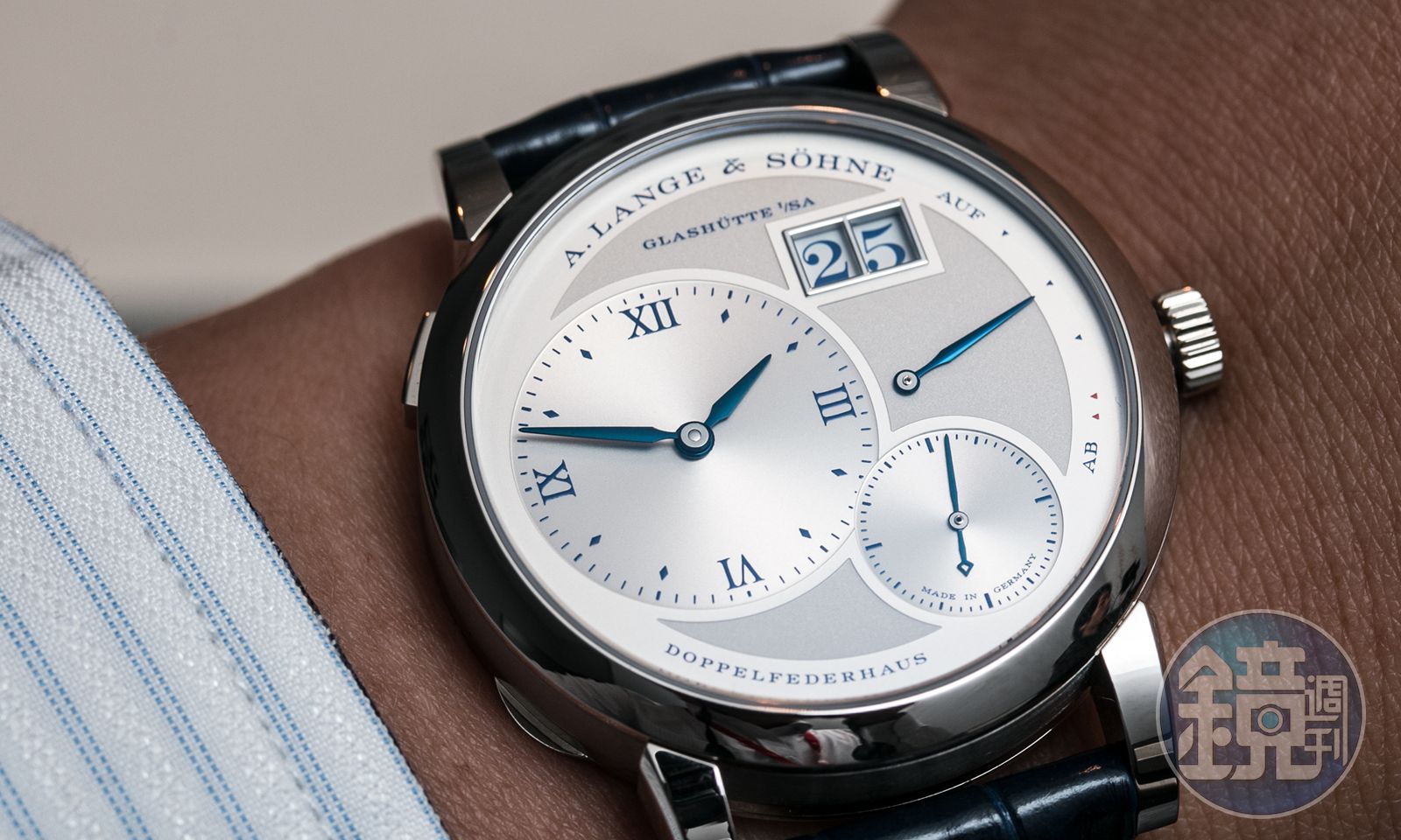 雖然僅是改配色換底蓋,不過朗格從沒做過軍官錶後底蓋這種設計,而且使用的藍色也相當獨特,加上25周年獨特的意義與稀少的數量,一定還是相當搶手,如果有想要納入收藏的收藏家(尤其又想要收集全套),快點下單吧!Lange 1 25th Anniversary限量250只,建議售價約NT$1,431,000。