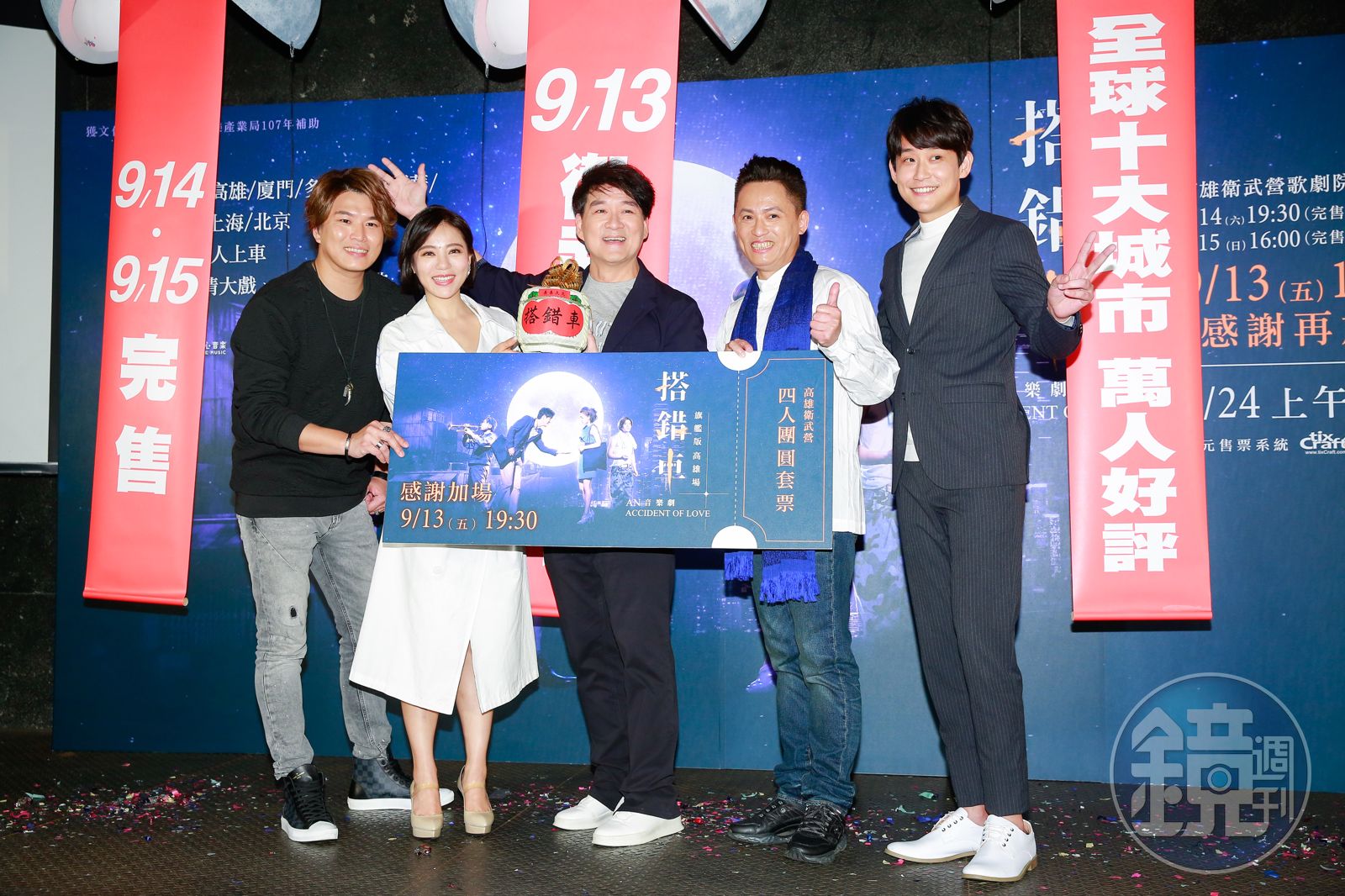 記者會中除了宣佈9月14、15日升級旗艦版的《搭錯車》高雄衛武營歌劇院2場完售,9月13日中秋節團圓日將會有感謝再加場,《搭錯車》也將陸續開往南京、武漢、上海、北京等城市,將創下100天跑遍10城市的難得紀錄。