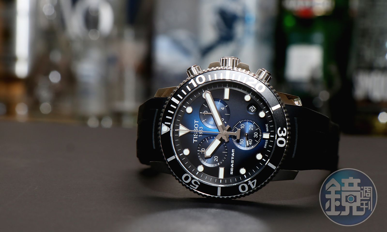天梭全新Seastar 1000系列石英計時碼錶共有藍面、黑面以及漸層藍等不同版本,錶帶則提供不鏽鋼鏈帶與橡膠錶帶兩種選擇。裝載由ETA機芯廠製作的ETA G10.212石英計時碼錶機芯,鏡面則為藍寶石水晶材質。不鏽鋼鏈帶版本定價為NT$17,600,橡膠錶帶則為NT16,700。