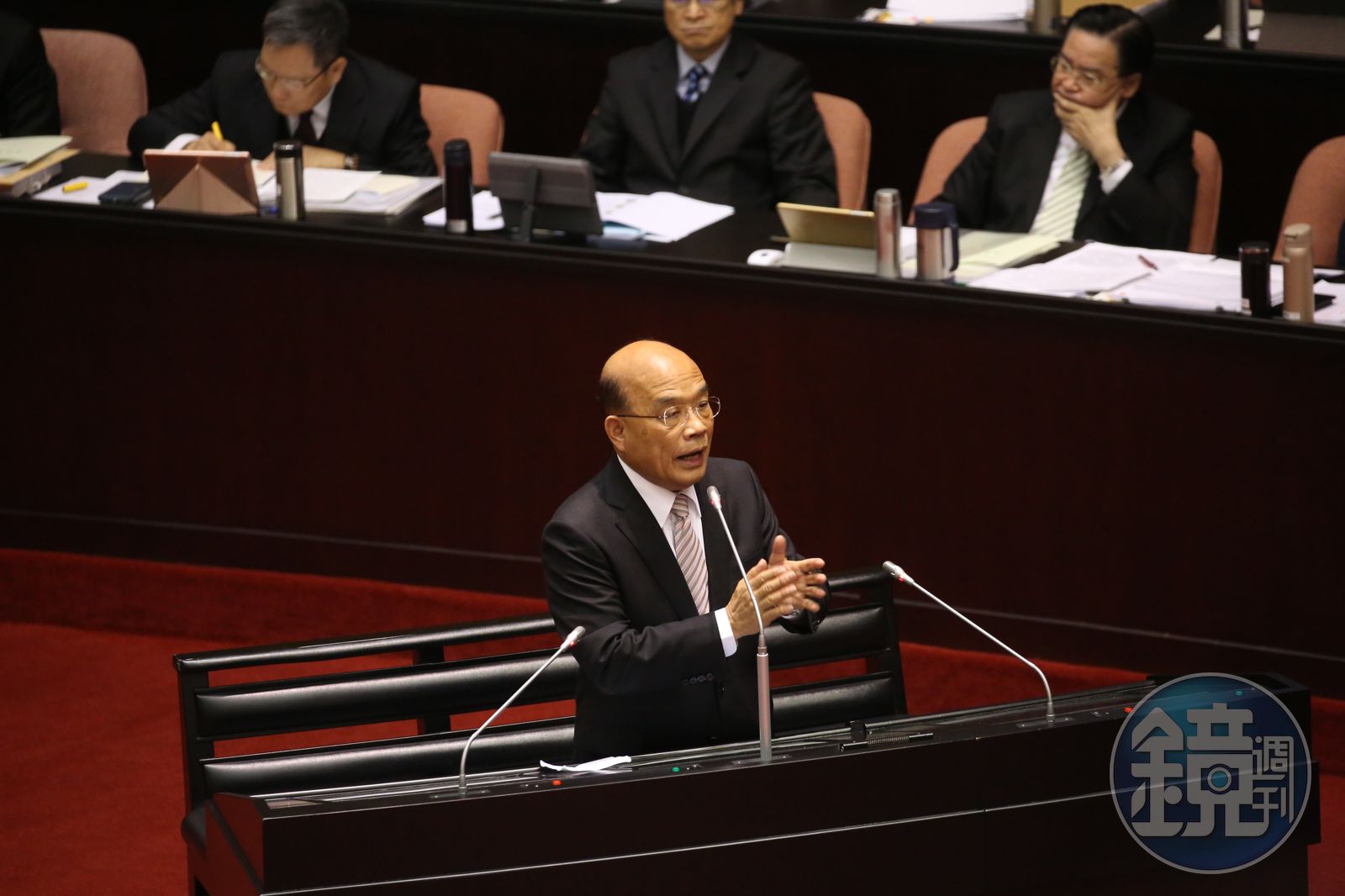 而今(22日)早行政院長蘇貞昌到立院備詢時,媒體問到關於國民黨昨(21日)提到和平協議原則,他以英國與德國為例,指當年英國首相張伯倫與希特勒簽署和平協議,也是這樣說,當時「搖著一紙和平協議津津得意」,但卻換來希特勒發動戰爭,最後還是邱吉爾帶領英國抗戰,贏得戰爭。歷史會說明一切,不必重蹈覆轍。