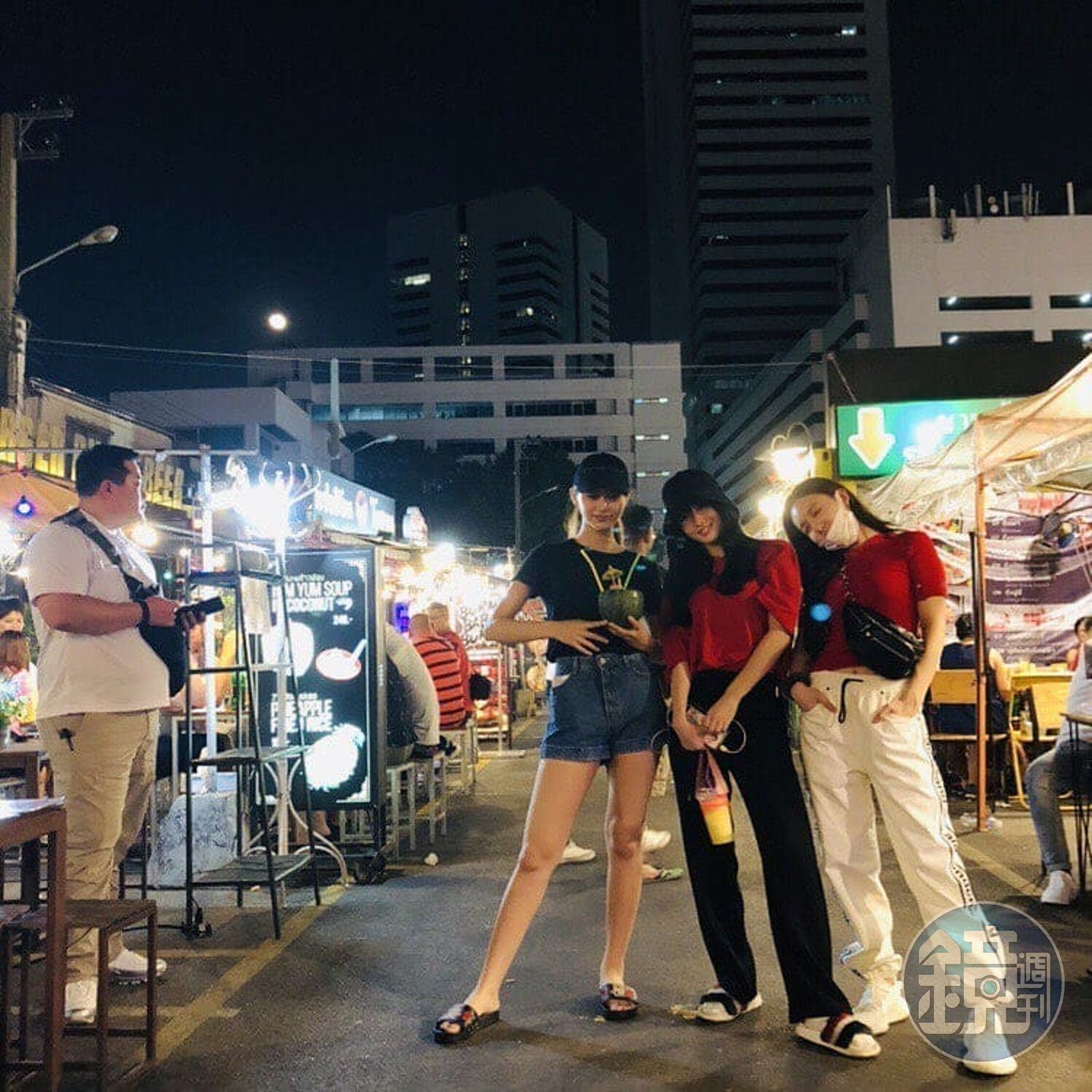 子瑜在泰國和團員們一起逛夜市。(翻攝自Twice IG)而不同於舞台上的華麗妝容,3人的素顏在鏡頭前依然清秀可愛,子瑜穿短褲露出的逆天長腿也讓大批網友讚美「女神無誤」。