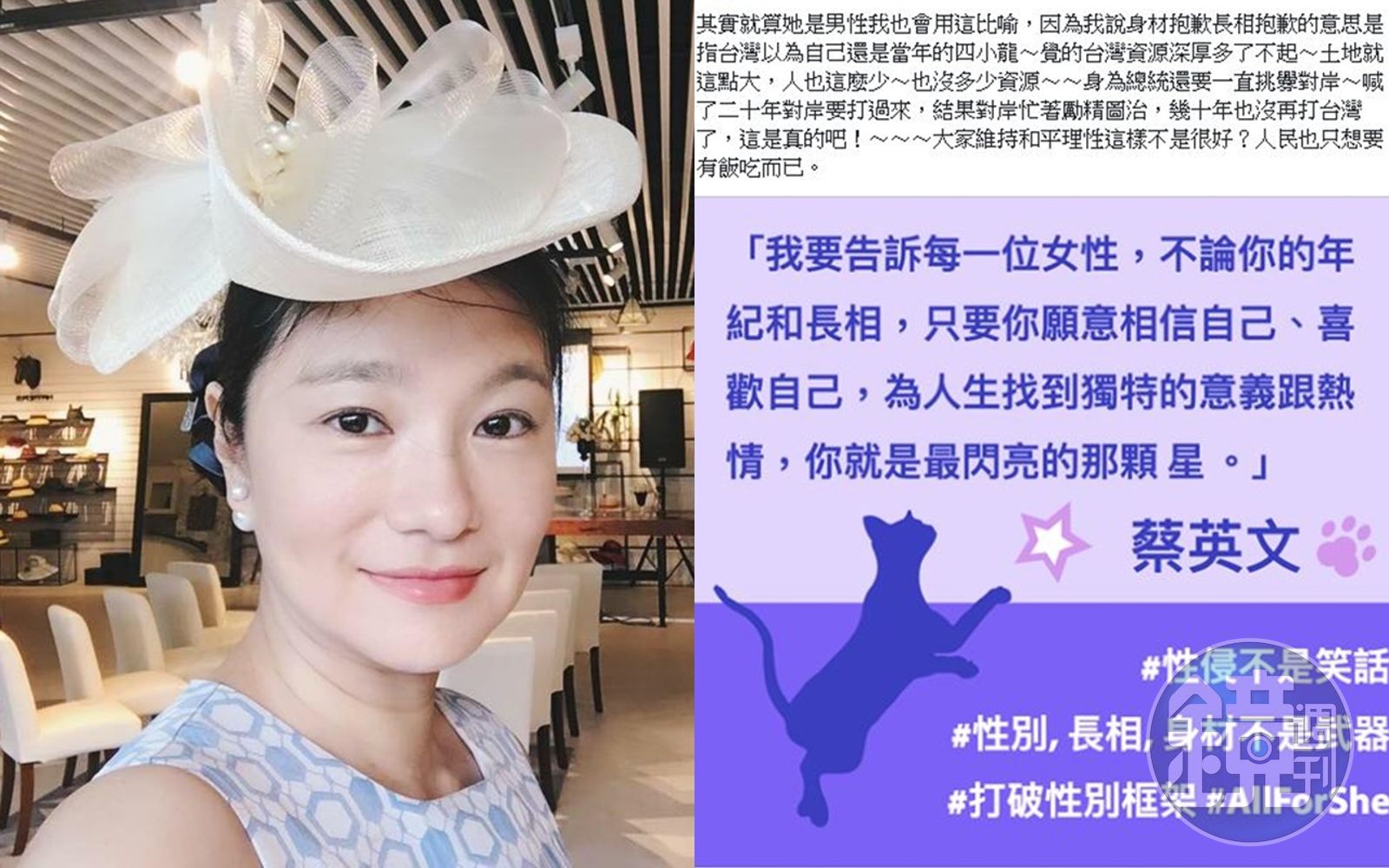 為此,總統蔡英文也發文回應,認為用性別質疑自己的能力,並沒有意義。用性別、長相、身材這種天生的條件來批評他人,不僅不客觀,更是模糊焦點。並霸氣宣言「不管台灣的總統是誰,面對中國對我們的打壓和威脅,都應該大聲告訴世界,台灣不願意被霸凌。這一點,跟性別無關,但是跟志氣有關。」