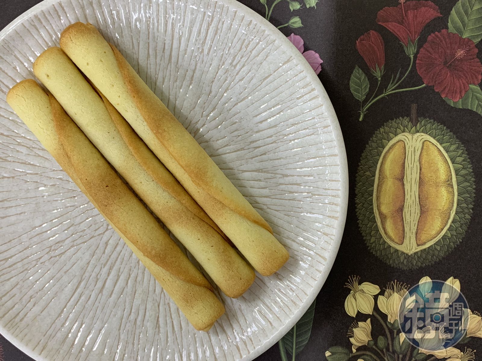 一撕開包裝,立刻飄出榴槤味,這股味兒來得讓我有些措手不及,但還不至於像現殺榴槤,那種擋都擋不住的濃濃瓦斯味,一口咬下,蛋捲的甜香先讓人卸下心防,但榴槤味緊接在後,有如海波浪,一波一波襲來,讓我驚訝的是,我沒有想像中的抗拒,還開了第2條來吃,可能是因為我對蛋捲的愛,超越了榴槤!但我相信榴槤控應該會吃到愛不釋口。