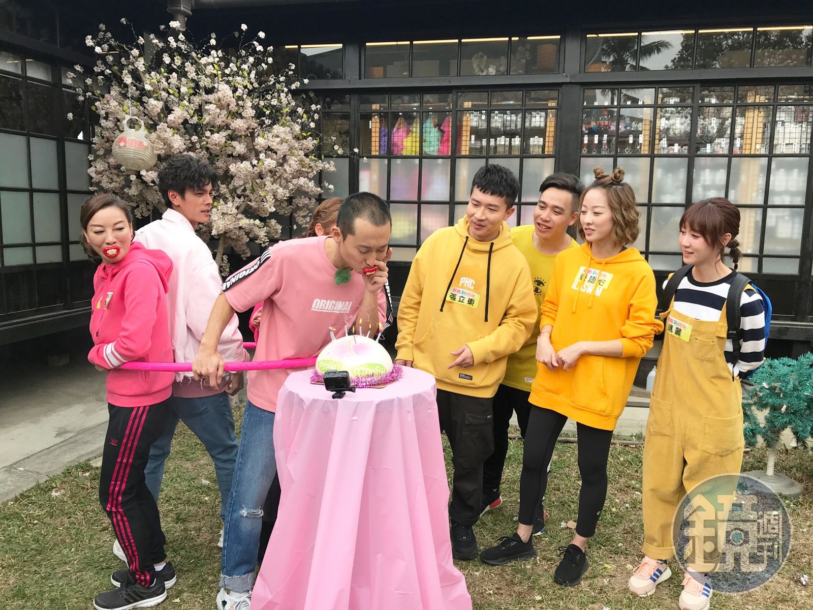《綜藝新時代》到嘉義錄影,利用慶生設計遊戲關卡,要藝人用鼻孔吹蠟燭。(八大提供)發布時間:2019.02.28 16:17 臺北時間