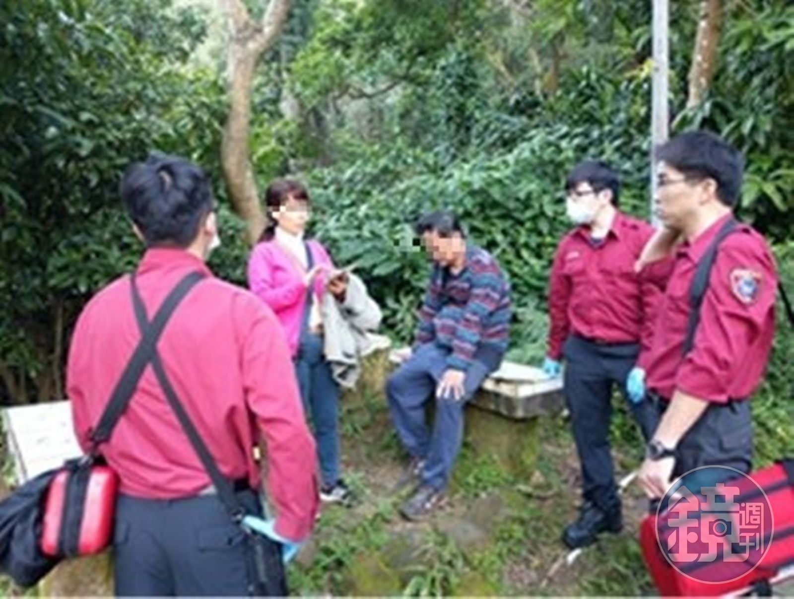 警方到達現場發現,謝姓男子因為在登山過程中失足跌倒,緊急電聯張姓妻子表示胸痛呼吸困難之後驟無音訊,張女束手無策只好報警。警方兵分二路搜山後便在不遠的涼亭處發現謝姓男子,警方將謝男攙扶下山後送至北醫就醫。