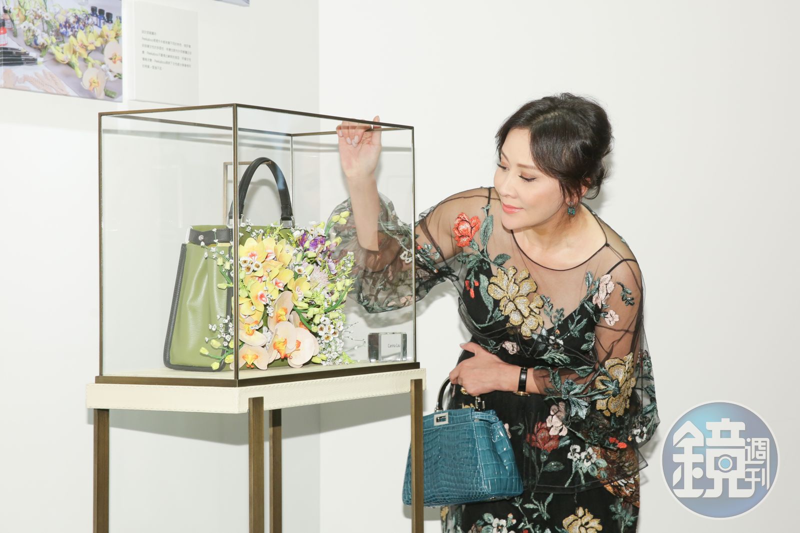 她受邀重新演繹Silvia Venturini Fendi設計的Peekaboo,將白帆布的包款雛形轉化為設計傑作,她表示,「構思時其實蠻快的,只是要用皮質呈現出花朵的過程有點長;我覺得花朵就像我們的生命,人從出生到死亡都離開不了花,佛祖捻花一笑的道理也都在裡面。」