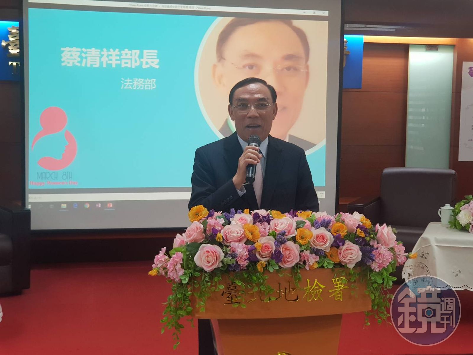 除了蔡碧玉分享職場經驗,檢協會還邀請高檢署主任檢察官陳文琪、台北地檢署檢察官張安箴分享女性檢察官在職場、社會、家庭舞台上的人生體驗,蔡清祥及身兼檢協會理事長的檢察總長江惠民也致贈花束給全體女檢察官應景。