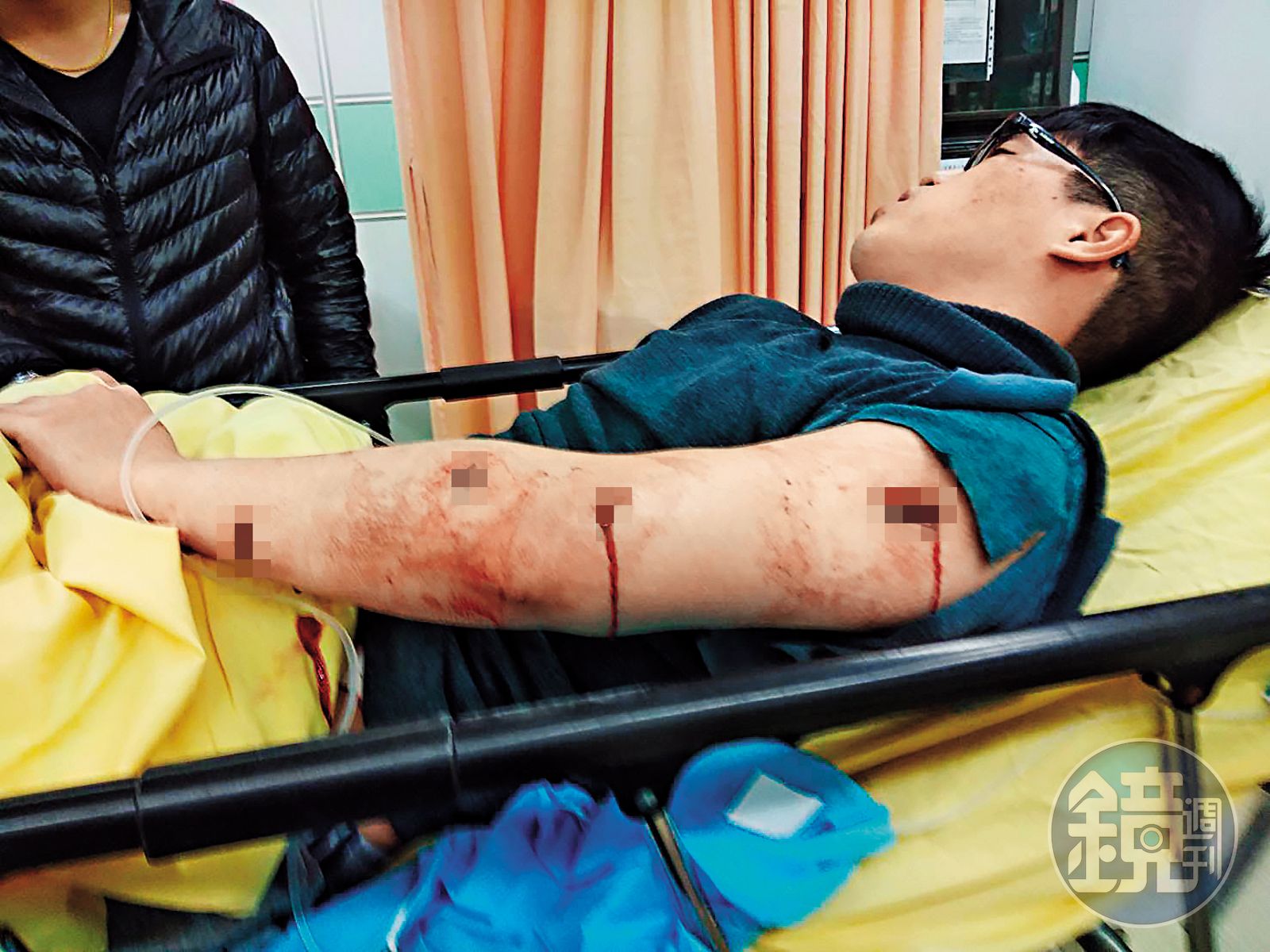 他說,由於凶器形狀特殊、殺傷力強,在抽刀時傷口根本是炸開的,當時就診的醫師都不禁吐露:「這種傷口是最難縫合的!」因此連肚子都須割開,把內視鏡塞進去檢視腸子。傷重的蔡姓少東大難不死逃過一劫,但受訪時手仍無法活動,連坐起身都要人攙扶。