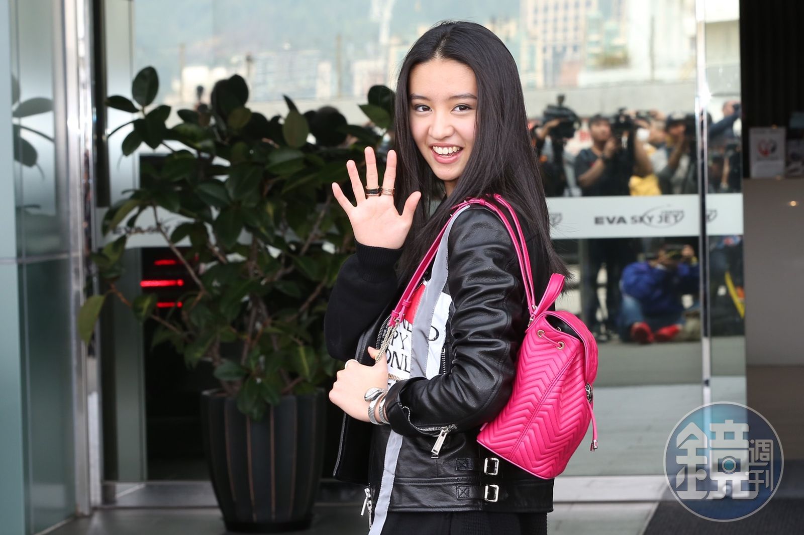 木村光希出現在機場時,一身黑色勁裝,她穿著黑色皮衣、短版洋裝搭配短靴,肩背8萬6,900元的碧璽色Serpenti Forever後背包,完全的青春女孩模樣,她有禮貌的不斷揮手致謝,俏麗容貌與窈窕身形非常吸睛,當然,她配備完整的寶格麗珠寶、手錶,更達到百分百宣傳效果,讓品牌大大曝光。