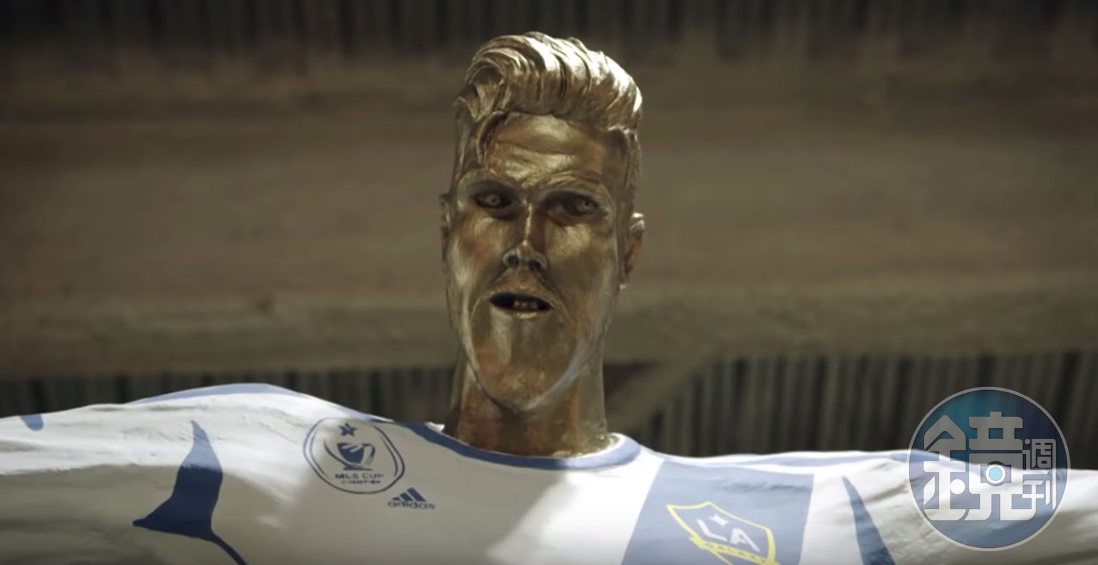美國洛杉磯銀河隊(LA Galaxy)為了感謝貝克漢帶動美國足球發展,特地為他打造全新紀念雕像,但正式問世前,卻被貝克漢的好友詹姆斯柯登(James Corden)抓到機會惡整,另外製作了一尊超醜假雕像,讓貝克漢瞬間屎臉差點翻臉。