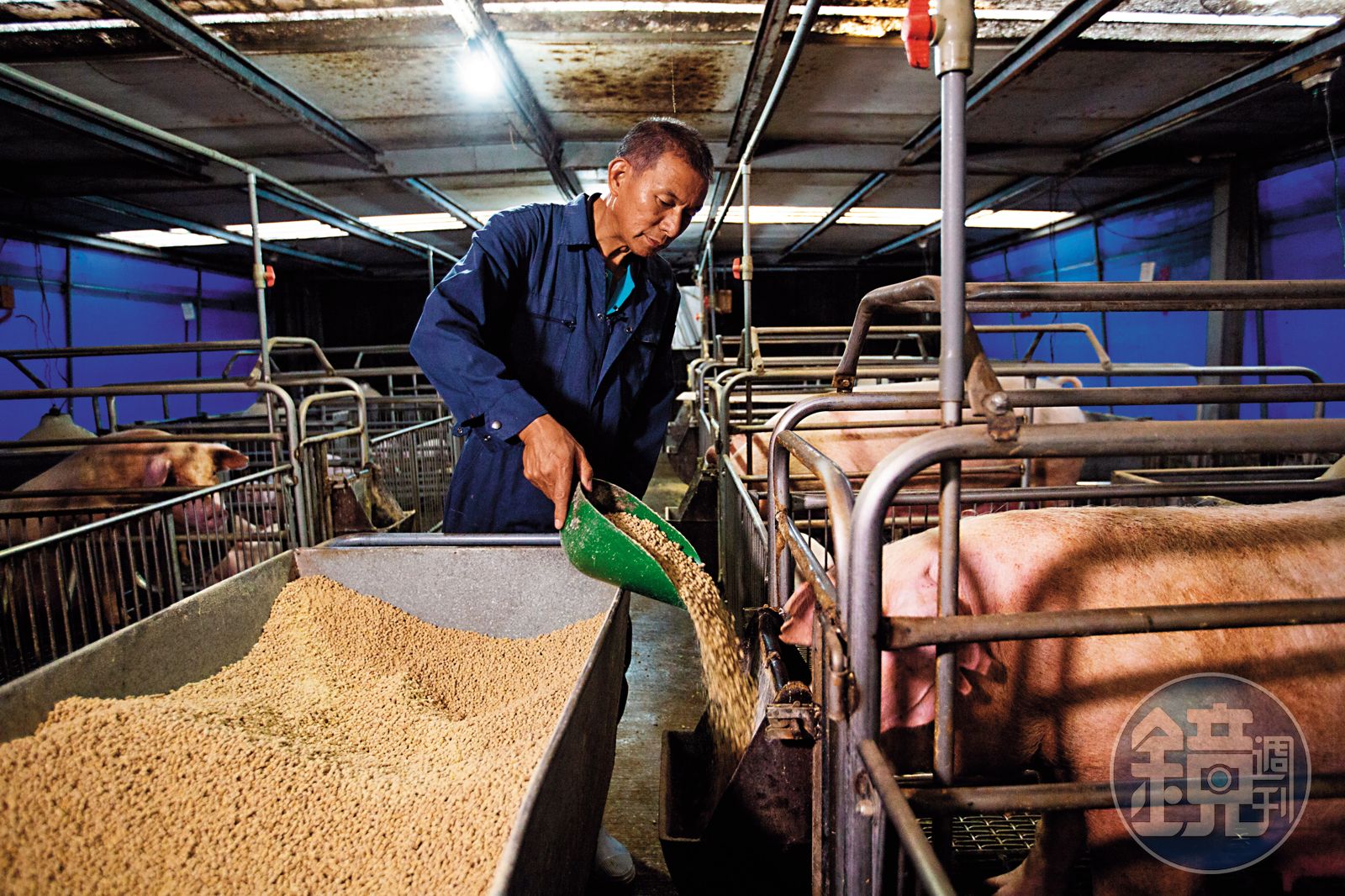 但也可能是個機會。陳國訓就坦言,在低點進場,口蹄疫前他只經營屠宰場,「反而從口蹄疫後開始養豬,等於是受益者。」但一切都經過計算。口蹄疫前,台灣年屠宰量約1,400萬頭豬,疫情發生後降到700萬頭。台灣人愛溫體豬肉,冷凍的進口豬肉無法填補落差,他就投身養豬業,光台灣部分一年可產出20萬頭,也經營2家屠宰場,現在大家在麥當勞、鬍鬚張吃到的豬肉,都從他們家出去。