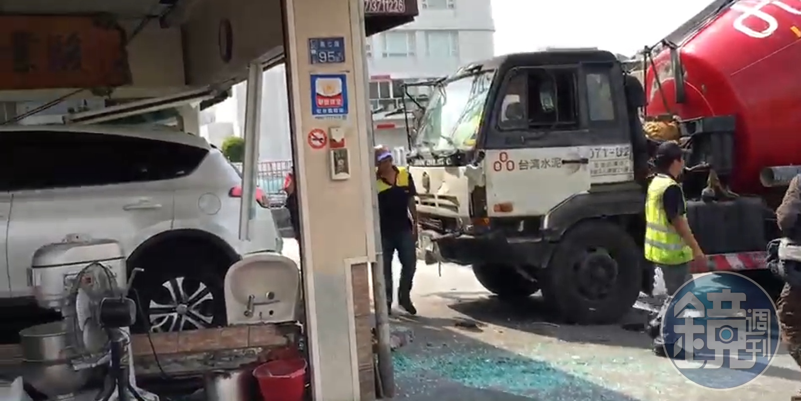 高雄烤鴨名店遭混凝土車撞毀 驚悚畫面曝光