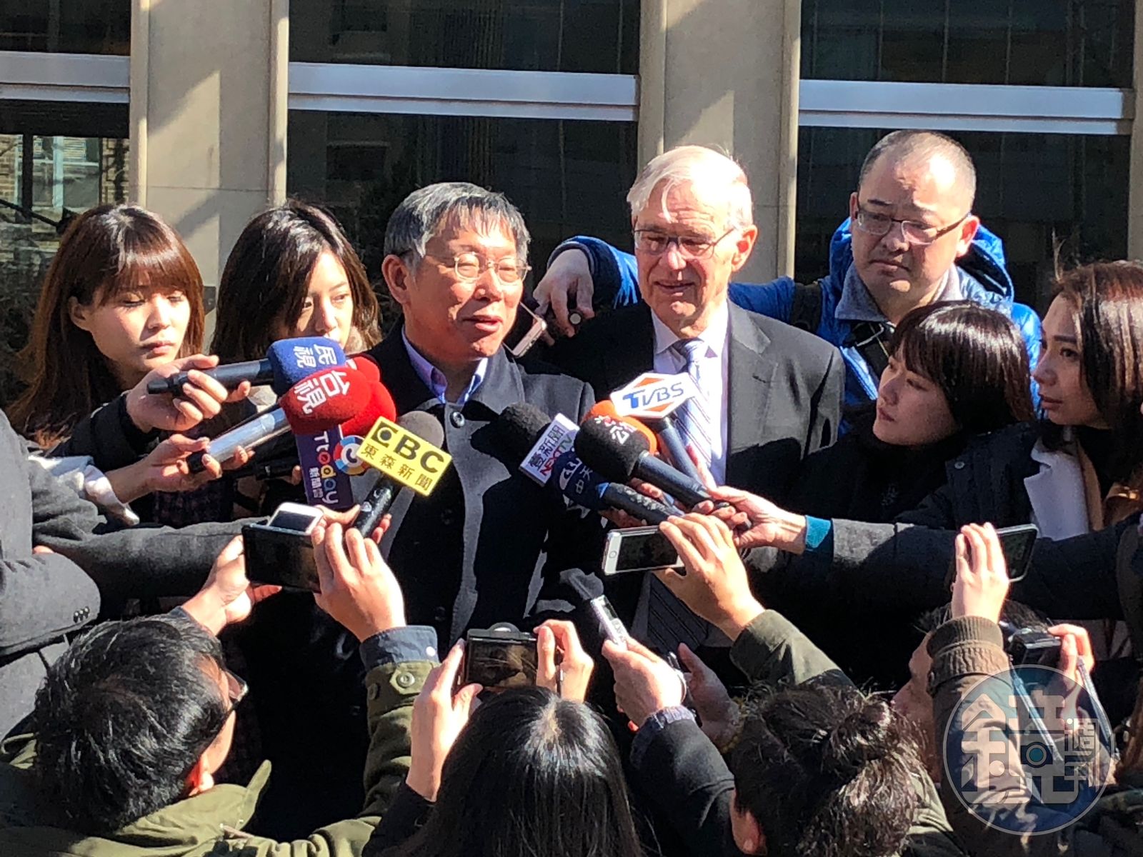 美國時間19日上午9點,柯文哲步入布魯金斯院展開不公開的閉門會談,包括卜睿哲、葛來儀等都親自到大門口迎接,隨後,包括美國國防部前亞太副助理部長的鄧志強(Abraham Denmark)、美國在台協會(AIT)執行理事羅瑞智(John Norris)等人也先後步入大樓。