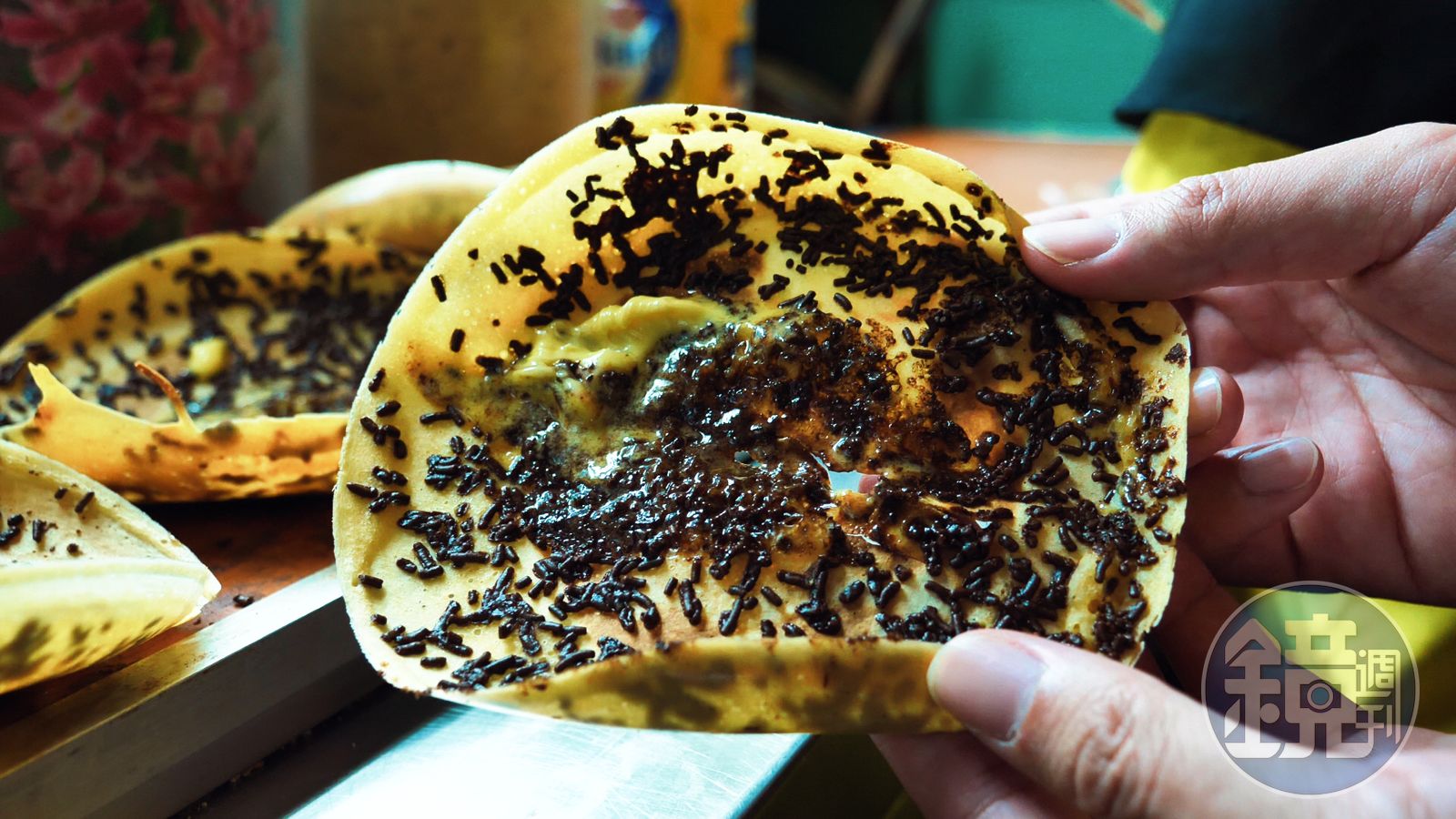 一到目的地,鄭淵元就先帶我們去品嘗街口的煎餅攤「Murni Martabak Piring」,這是從中國福建傳過來的街邊小吃,類似台灣的「麥仔煎」,不同的地方是,大煎鍋換成了小鐵盤,而且把餅皮做得比較薄,配料會撒上巧克力米,再鋪一片起司。口感薄脆、鹹鹹甜甜,簡單而美好。