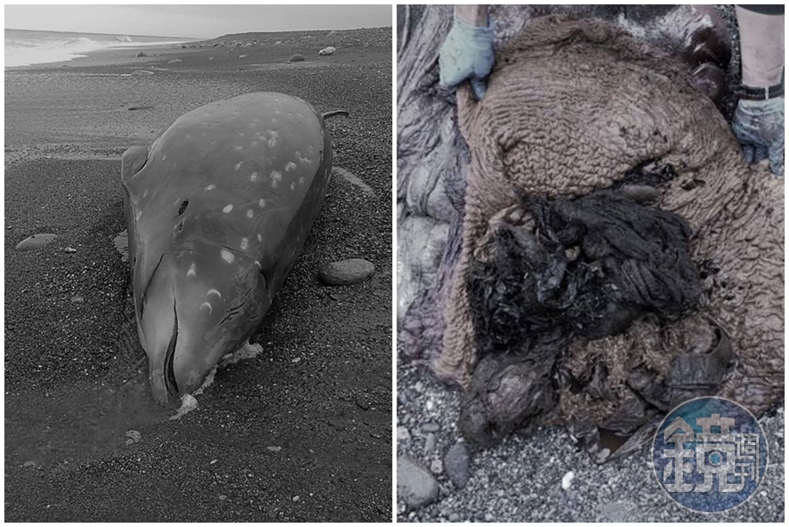 為了確認胃內人造垃圾的種類,海洋保育署與中華鯨豚協會昨(19日)進行檢查,總共發現6個塑膠袋、4個麻布袋、硬質塑膠片1塊、數團纏繞在一起、顏色粗細不一的長條狀塑膠、2條粗細不一的魚線,還有許多塑膠碎片。