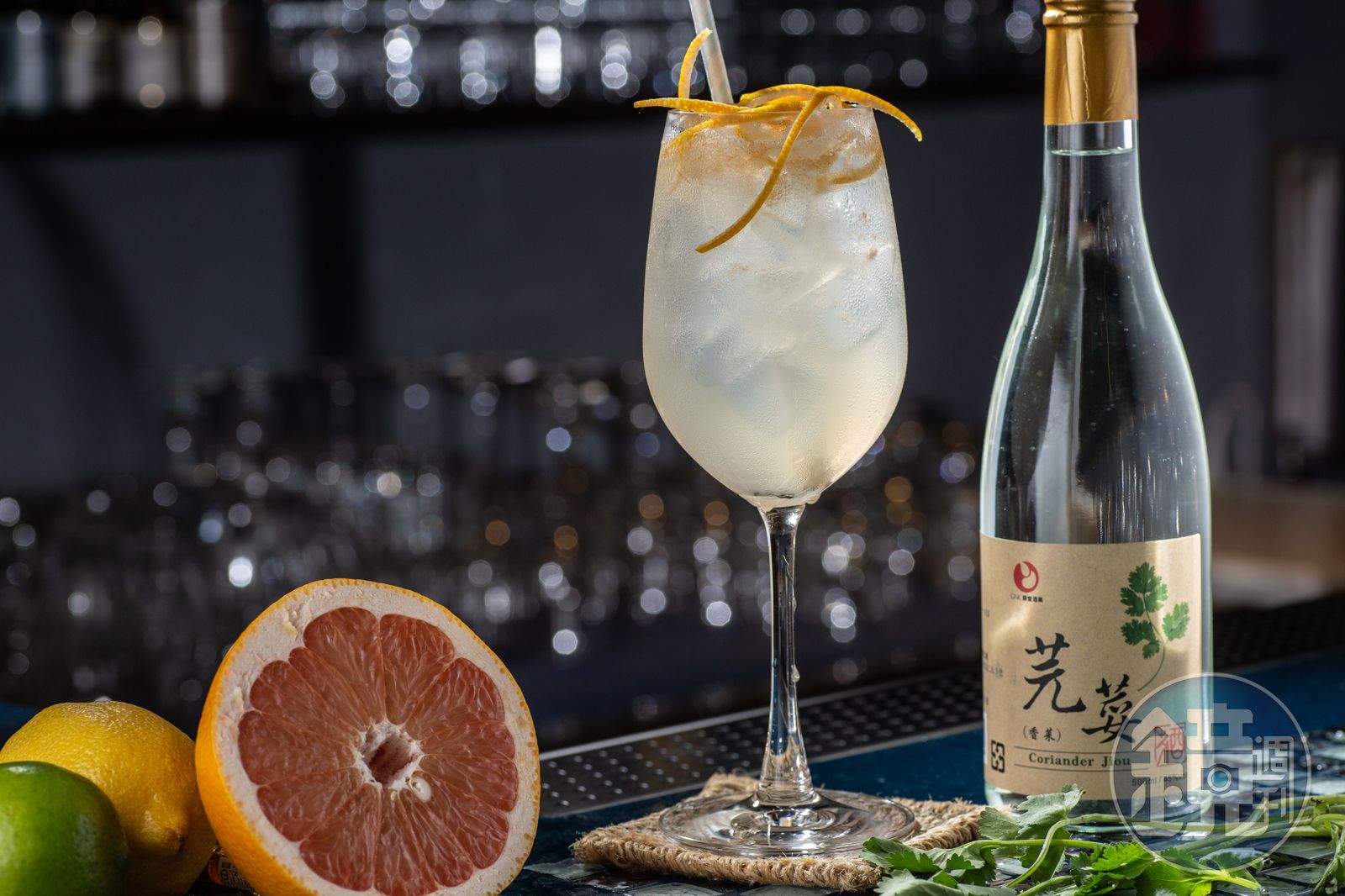 不過這酒中香水卻讓Jojo做了次國民外交。「有次有位日本客人來,說想喝清爽點的,我沒意識到日本人都怕香菜,用『芫荽』取代琴酒做了款Fizz,沒想到隔兩天那位客人又帶女性朋友回頭來點。」他於是用義大利開胃酒Campari和葡萄柚、通寧水當基調,淡色蘭姆酒的糖霜感,讓香菜的特殊香氣變成賦予清涼的隱味,成了一杯讓日本人克服香菜恐懼症的Spumoni。