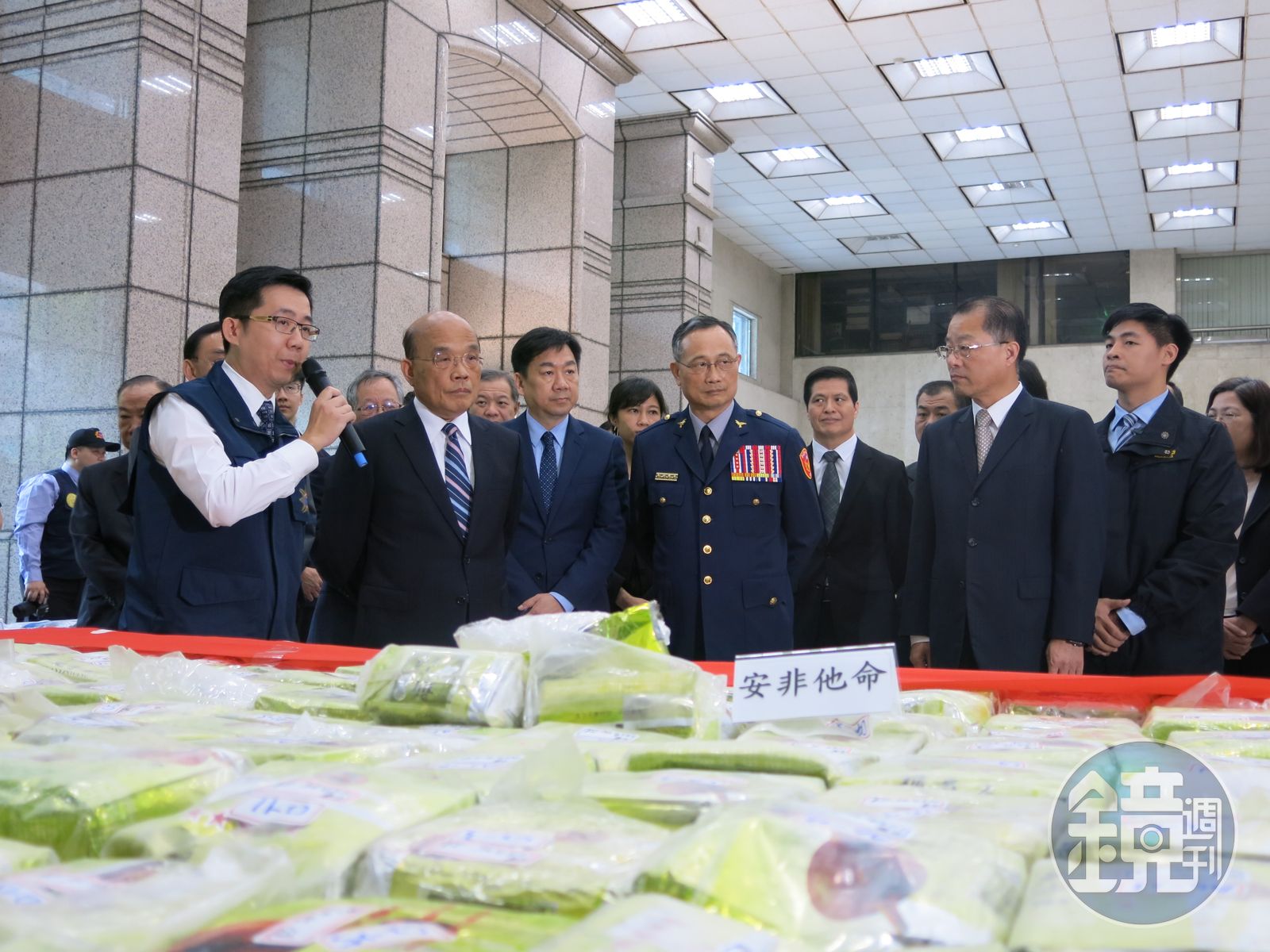 蘇貞昌致詞時說,毒品案件對社會的影響之廣、不法利益之大,必須強加打擊力道,貫徹掃毒決心,對司法警察單位努力不懈的成果高度肯定,也對基層人員辛勞表示慰問。蘇貞昌指出,希望各單位對於各種犯罪案件都能合作無間,消弭隔閡,帶給民眾最大的安全感,將在下周開會檢討,致力於各機關之間的溝通協調。