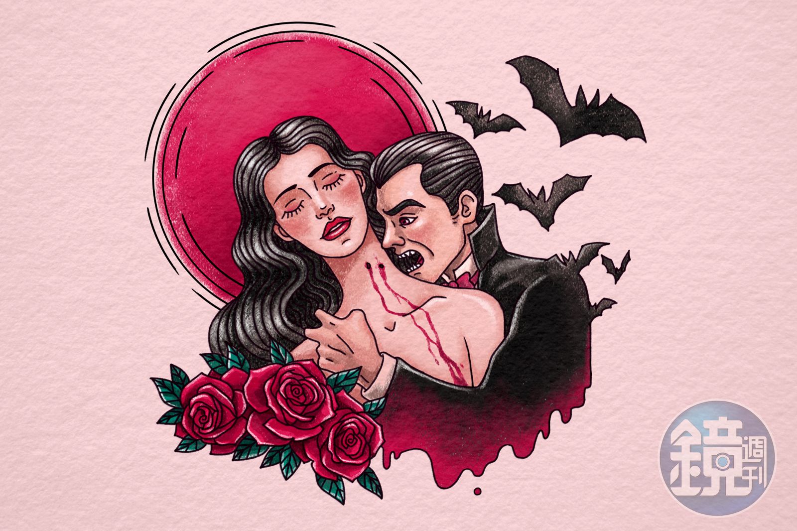 這一段放在任何一本現代的吸血鬼小說裡都絲絲入扣。小說裡的吸血鬼疊合了死神與天使的形象,教人好奇,教人害怕,教人難以抗拒,教人不忍釋卷。