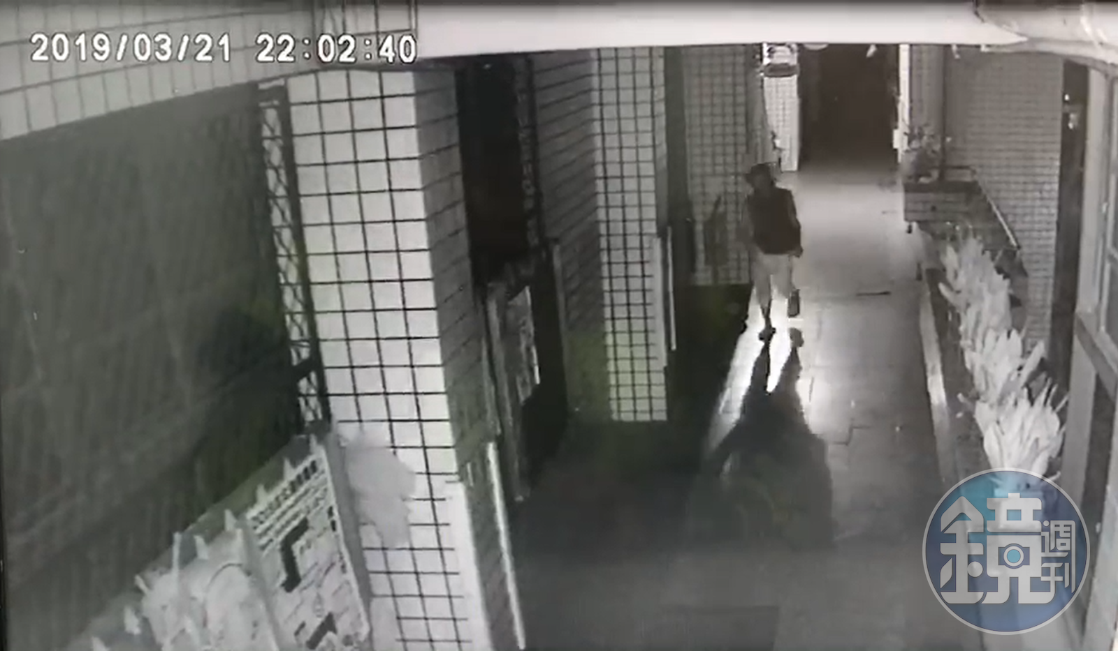 張男行竊得逞下到一樓時,還擔心遭監視器拍下,頻頻用帽T遮臉。(翻攝畫面)發布時間:2019.03.25 16:03 臺北時間