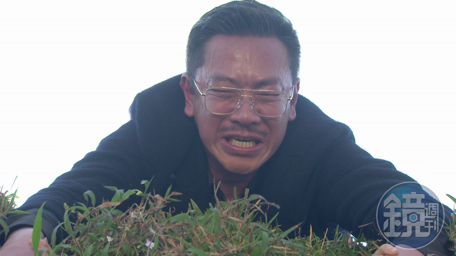 江俊翰使出全力拍攝墜崖戲碼,臉漲成豬血色相當嚇人。(民視提供)發布時間:2019.03.26 17:12 臺北時間