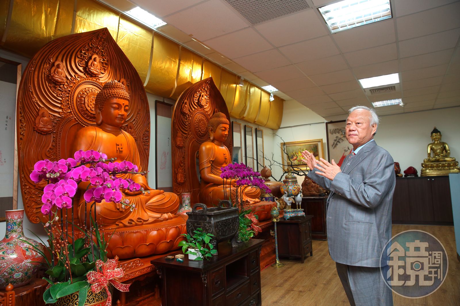 上百尊神像坐鎮辦公室各個角落,尤利春歡迎有緣人帶走,中台禪寺也曾來此請走一尊大佛。篤信佛教的他解釋:「出家人如果看到佛像流落在外,要守護,把祂請回來保護。」