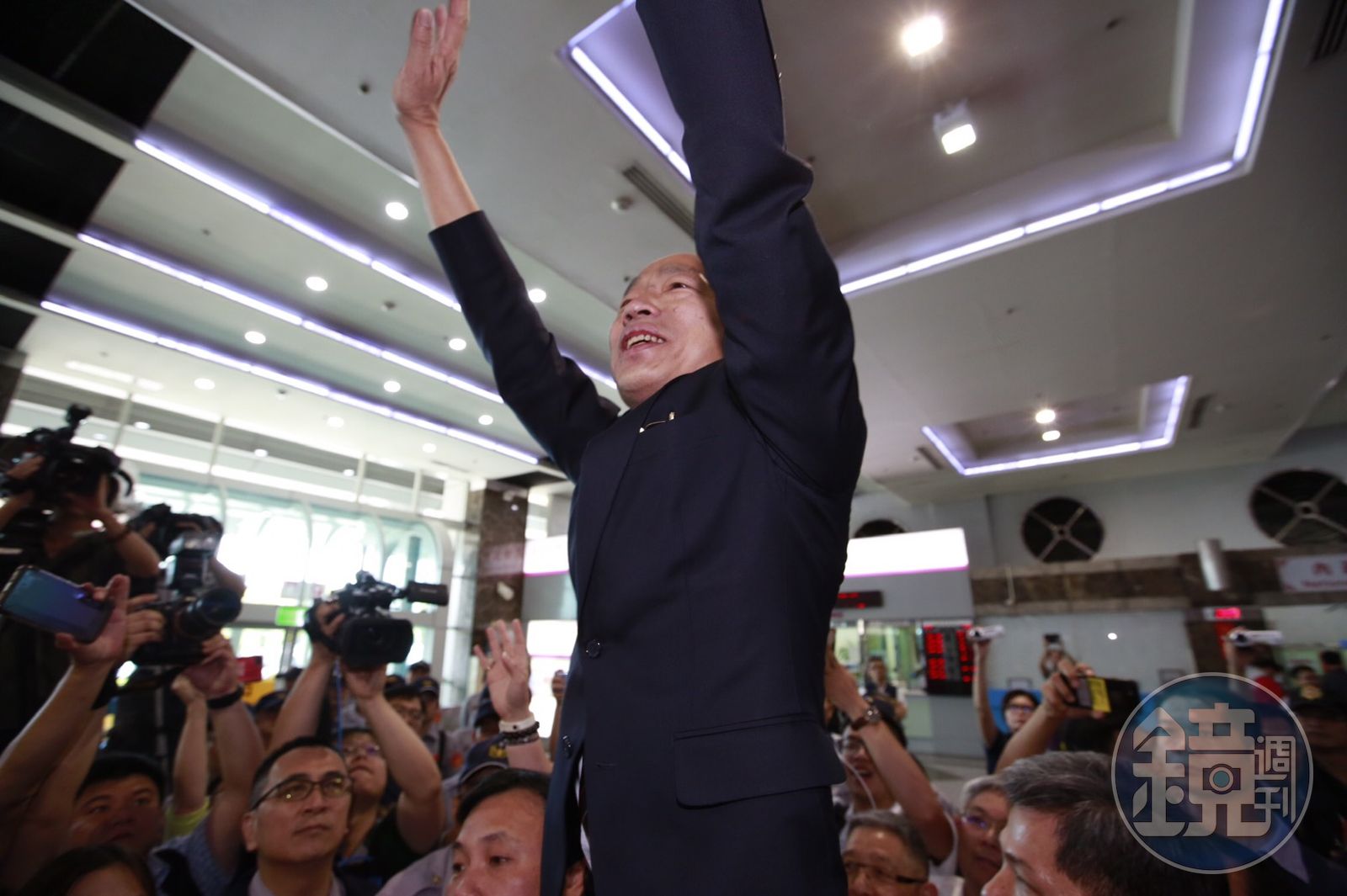 高雄市長韓國瑜昨(28)日結束出訪行程歸國,返抵高雄小港機場時,韓國瑜一度被身旁2名男子抱大腿扛起,讓他方便與現場的韓粉揮手互動,被桃園市議員王浩宇怒轟「像封建時代的皇帝」。高雄市警局今(29)日證實,扛起韓國瑜的這2名男子為高雄市員警,也是韓的貼身隨扈。