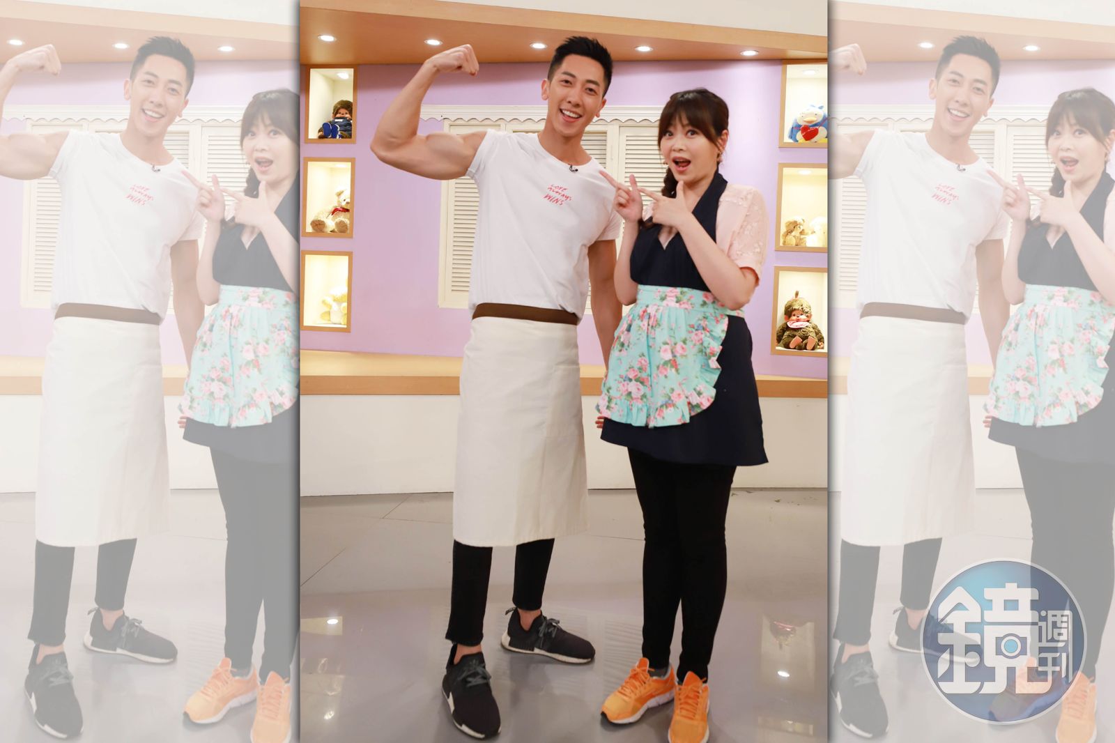 張哲偉上民視《用點心做點心》做甜點,主持人王瑋瑜合照時太興奮,被肚中女兒用力踢了一下。(民視提供)發布時間:2019.04.01 16:18 臺北時間