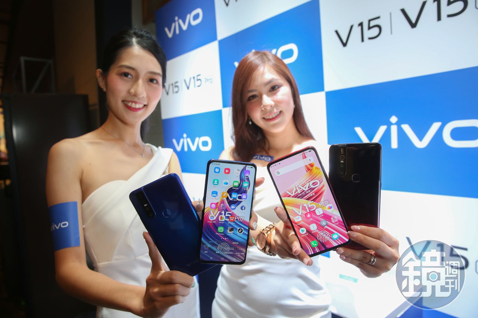 今日在台正式發表V15系列手機,主打無瀏海的零邊界全螢幕,螢幕佔比達91.64%,配置3200萬畫素升降式前鏡頭,擁有120度AI超廣角三攝鏡頭,支援NFC、獨立三卡槽規格。vivo V15搭載6.53吋螢幕、聯發科P70八核心處理器、6GB記憶體、128GB容量、4000mAh電池等,有水晶藍、魅力紅兩色,單機價10,990 元,即日起上市;搭配台灣大哥大指定專案,月繳1199 元,綁約 30 個月,手機價0元。