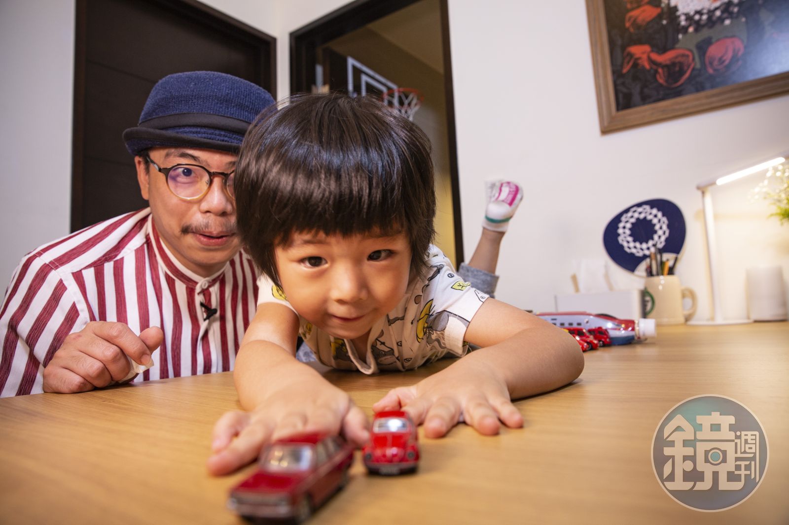 依照東方人的父子關係,現在大概是他們父子最親密的時刻。擔不擔心兒子長大後與自己疏離?「我現在沒女友,爸媽在台中,他就是我唯一的陪伴,哪天長大了,女生搞不好還有點戀家,但男生可能交女朋友,會『趴查某』了,或是念大學,出去就出去了。」他說,「我其實也滿擔心的,但是我當爸的年齡只有四歲而已,他現在四歲,我就跟著他長大,我當爸的年齡會愈來愈大,到時候應該比較知道怎麼面對吧。」