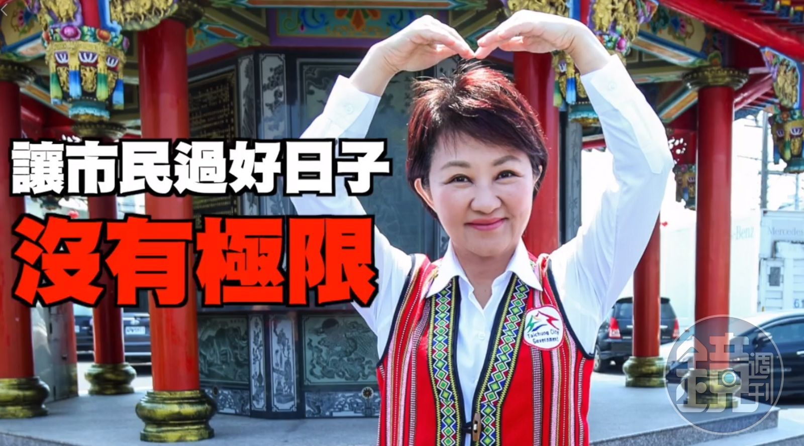 除了花博外,其他政績像是「爭取2020台灣燈會在台中」「一日訪港狂推農展品」「招商投資台中」「首屆台中購物節」「打通東興路」「國一接台74中央地方合作」「水湳國際會展中心動工」「台中海生館委外營運簽約」,最後更喊話「媽媽市長讓市民過好日子沒有極限」。
