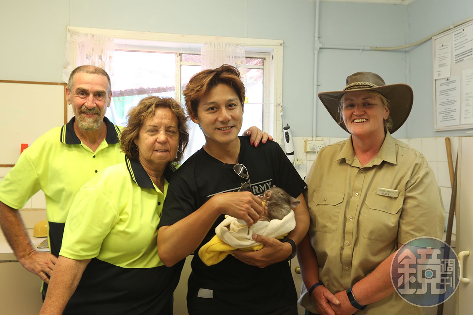 而這個野生動物保護園區,主要是提供受傷野生動物的避風港,據說園方人員來回開了12個小時的車子拯救受傷的袋鼠,並且每天持續不間斷地幫袋鼠做復健,廖科溢聽到後深受感動,除了一同參與受傷袋鼠接受治療的過程,還幫袋鼠來個舒服的「馬殺雞」,希望袋鼠可以早日康復重回大自然,他說:「其實我真的覺得這裡是非常有愛的地方,很開心參與了其中的一小部份,人跟動物之間其實也很有愛。」
