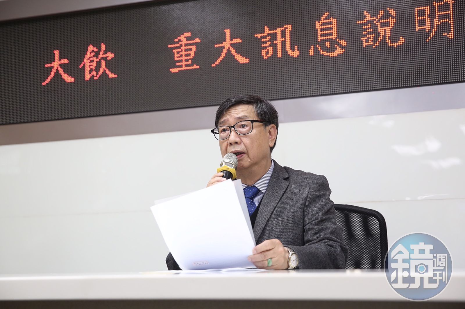 而今早大飲代理發言人洪松輝主管機關要求下,偕同法務林松聖、會計張惠琴等人一同出席重大訊息說明會,但對於記者提問依舊跳針說不清,並表示會在1個月之內再開記者說明會說明,強調大飲營運狀況健全完整,公司不會下市。