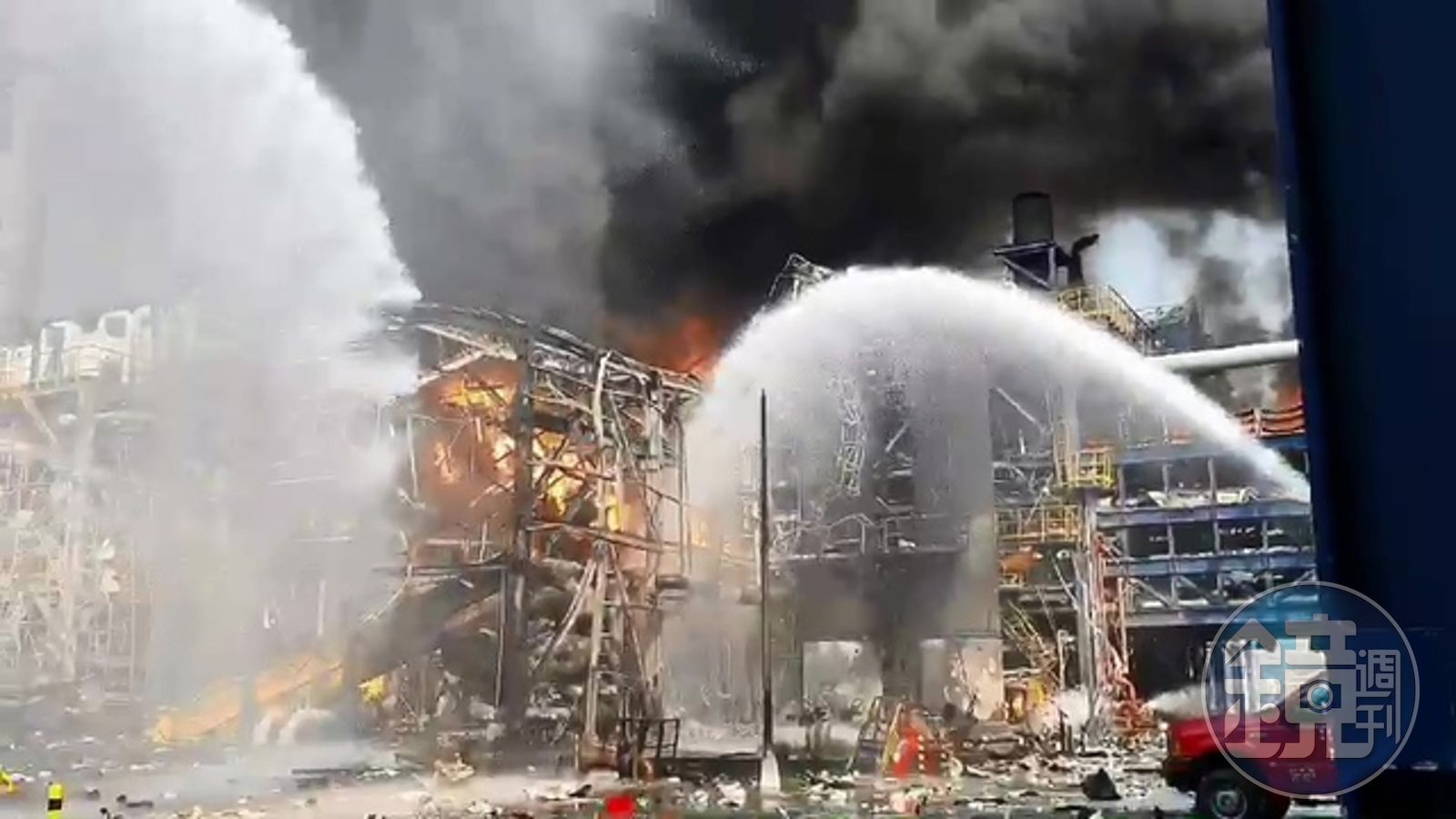 雲林縣消防局下午2點7分獲報,立刻調派麥寮、北五、台西、東勢分隊人,廠區內的台塑消防隊也出動救災,這時不只是濃煙,火光一閃,烈焰亂竄,火舌張牙舞爪的擴散。
