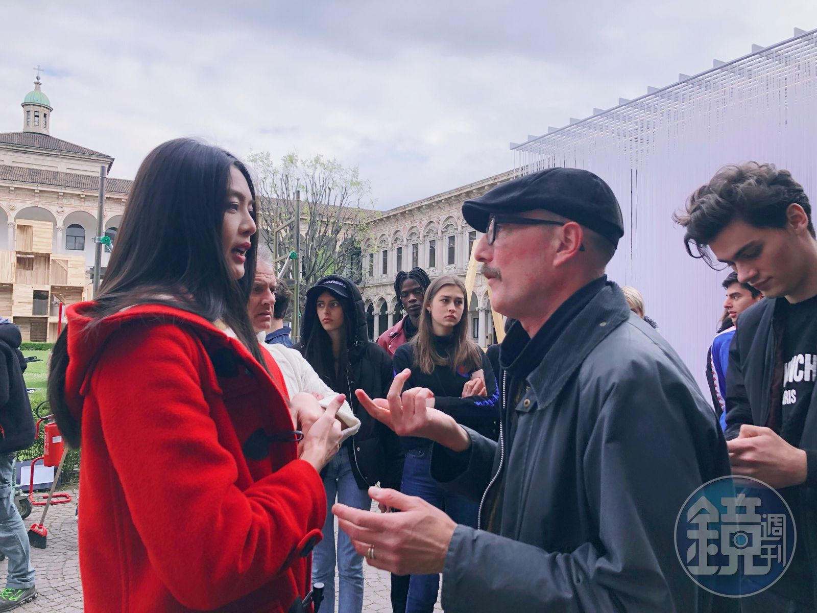 前天已抵達米蘭的林嘉綺,透露產後為了這個活動,第一次離開家人這麼久的時間,昨天中午,她先到米蘭大學與義大利當地40位model彩排走位,有別於一般傳統伸展台,她必需挑戰穿著高跟鞋在大學校園堅硬的石塊路上走台步。此次戶外中央展區150公尺,靜態展區150公尺,總長300公尺。問她是否擔心高跟鞋會卡在石塊間的石縫間?她說:「我倒是覺得設計師很仁慈,高跟鞋的高度非常人性化。」