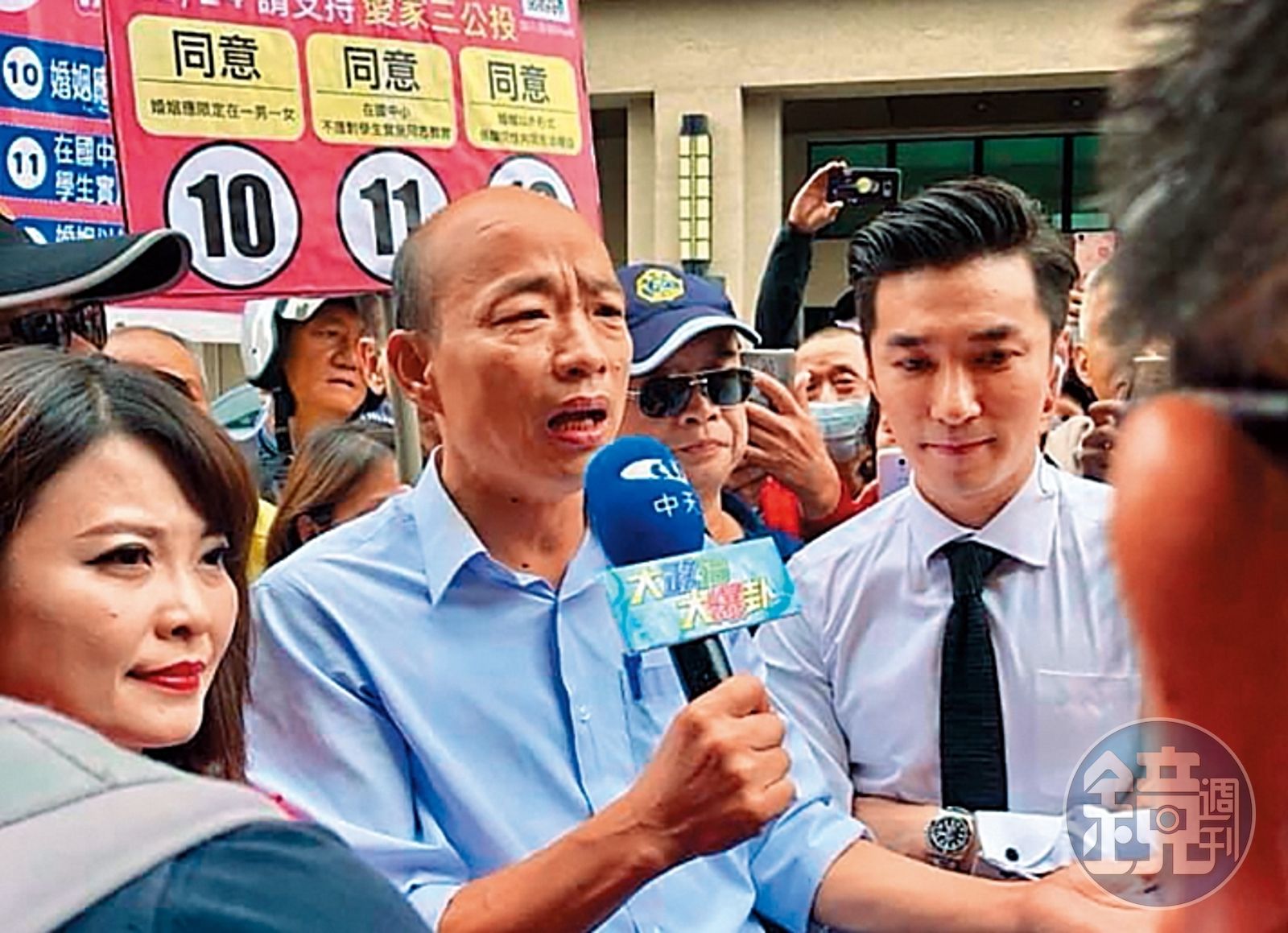 靠著韓國瑜(中),王又正(右)成為他的知名貼身主播。(翻攝自王又正微博)發布時間:2019.04.10 05:58 臺北時間