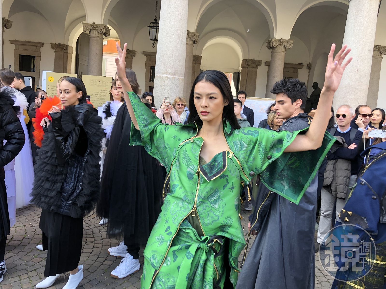 在後台的時候,許多男模跟她要聯絡方式,讓她成為當日人氣最爆棚的女模,問她有告訴大家,自己已經是2個孩子的媽了嗎?她說:「當然不可以講啊!他們不知道的,我若講了他們應該會立刻跪在地上拜我吧?」她開心笑說自己可以在米蘭立刻圈粉。