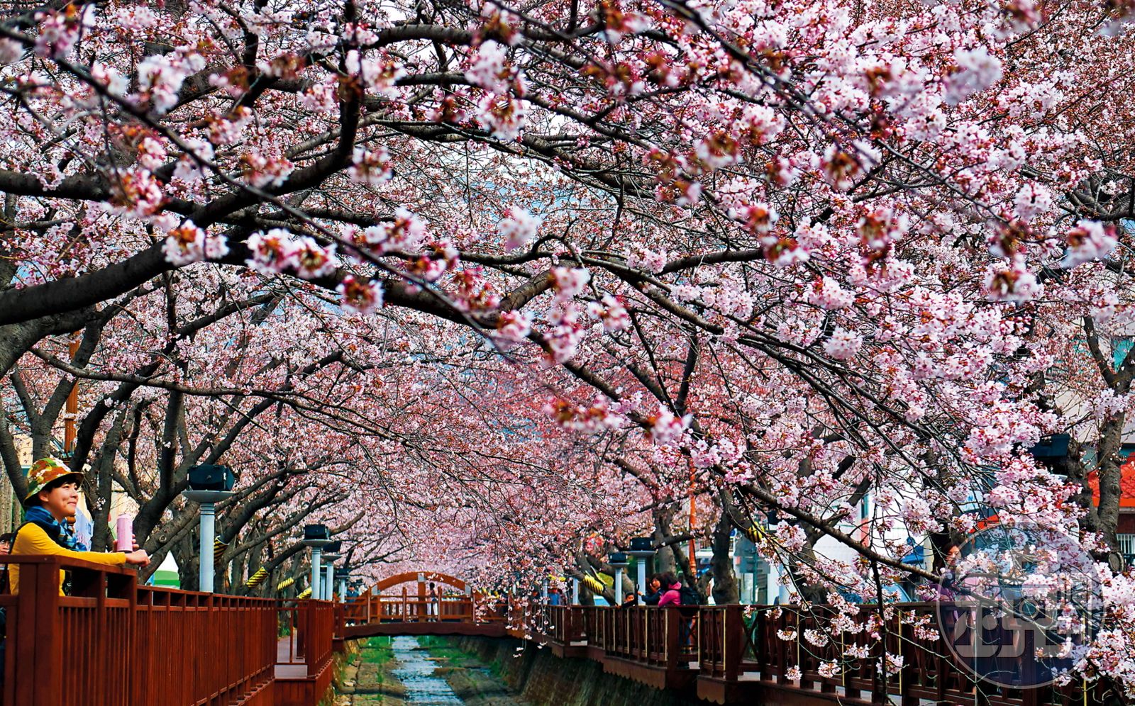 如果春天的鎂光燈與版面被櫻花占據,那麼韓國鎮海就是渾然天成的伸展台,這座擁有36萬棵櫻花樹的城市,不但有「三樂生態公園」裡粉白色的櫻花隧道,讓生活在城市裡的居民們,以慢跑、單車之名來行各種賞花之實;最讓人無法抗拒的莫過於餘左川兩岸旁,長約1.5公里的櫻花棧道,以及慶和車站800公尺的櫻花鐵道,讓旅人們在此拍照拍到心花怒放。