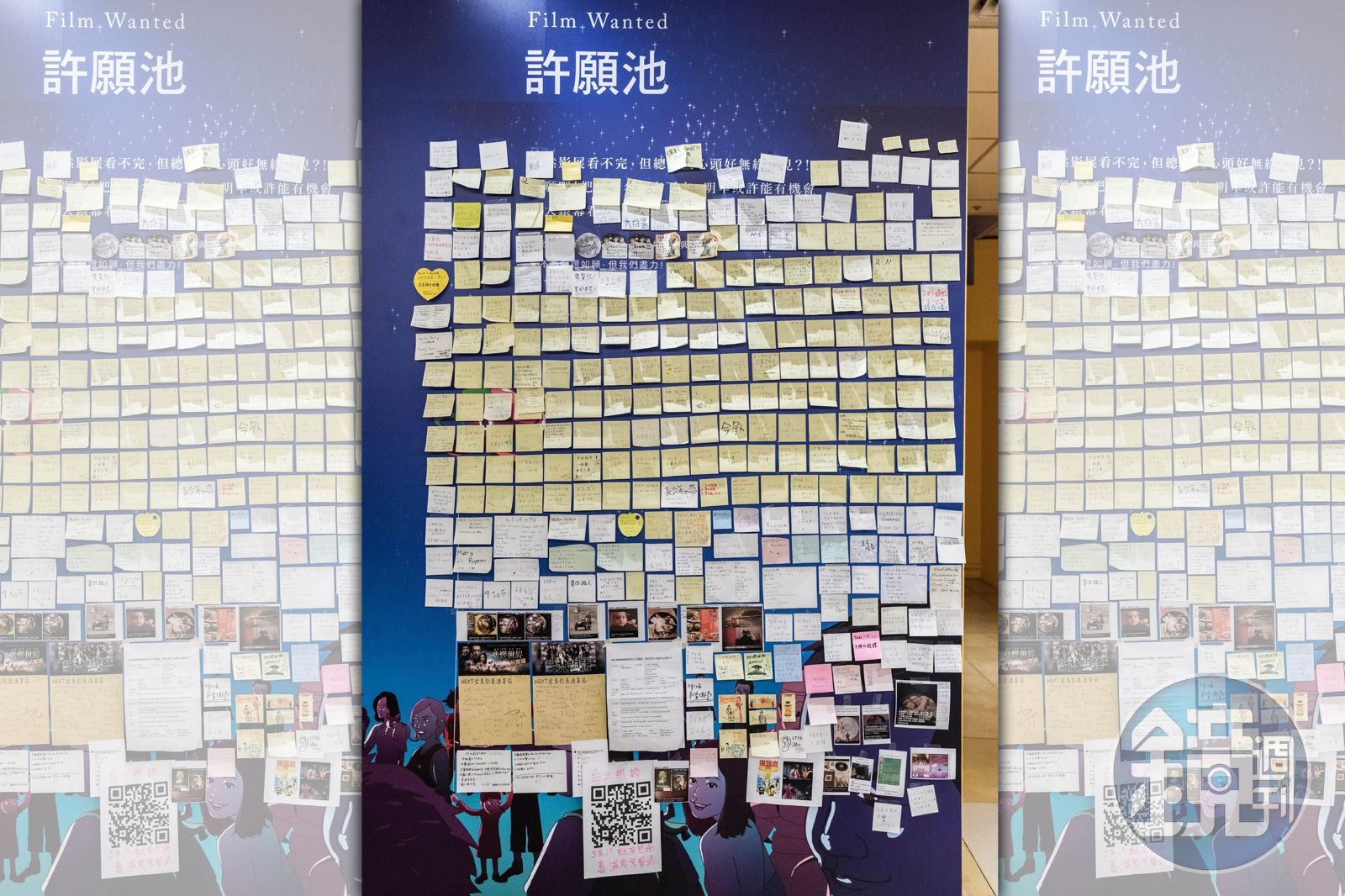 「許願池」原先只是準備給觀眾書寫建議影片的本子,後來乾脆改成公布欄,提供便利貼,讓觀眾寫上希望在大銀幕觀賞的影片或想法。如果隔年邀到所想的影片,影迷會來「還願」,放幾場、看幾場。更有趣的是,「許願池」還會有人來徵友。聞天祥笑說,「有影迷留言寫說『《洛基恐怖秀》那個扮演某個角色的好搶眼,願以其為友。』很像是以前雜誌後面的「交友欄」,沒想到在影展重現,很可愛。我們絕對不會把它撕下來,敢寫就貼在那。」
