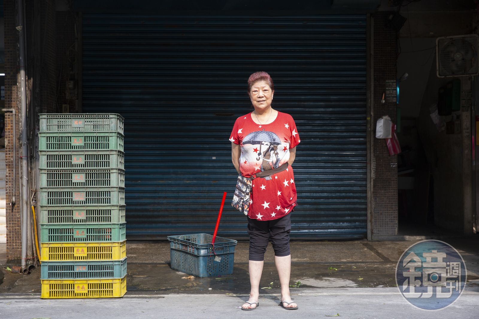 穿著鮮豔罩衫,腰間還綁著一個腰包,這位菜市場的菜販前半生是風華絕代的佳人。舊照裡,30歲的她穿著洋裝,是夜市賣藥康樂團的歌手。另一張舊照,是她打扮入時,持著麥克風唱那卡西的工作照。她27歲到北投唱那卡西,唱了十多年,直到北投禁娼才結束。
