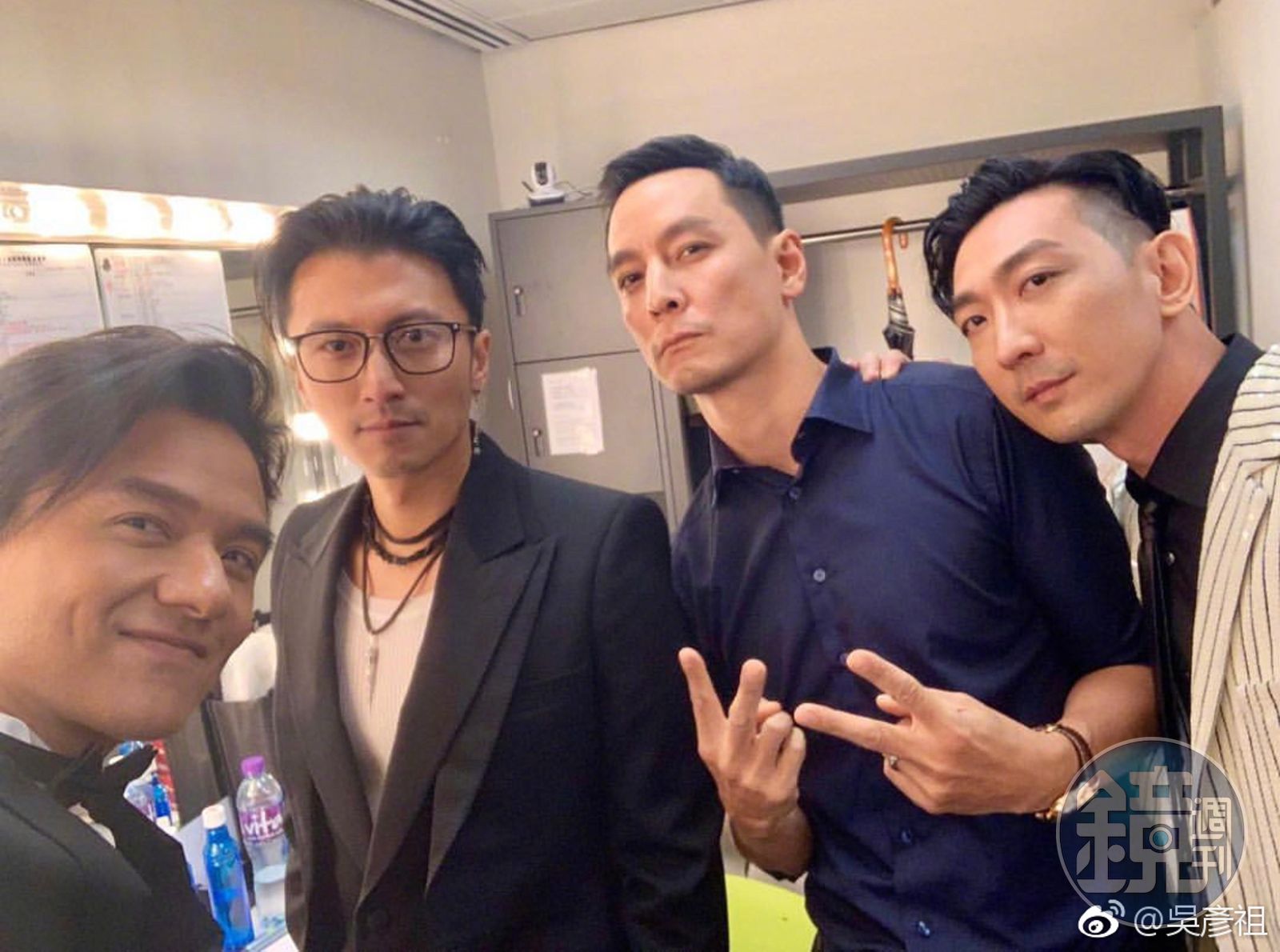 另一個大叔團則來自更久遠的《古惑仔》,去年鄭伊健、陳小春、錢嘉樂等人睽違多年終於再合體拍攝動作冒險片《黃金兄弟》。5人合唱的主題曲〈一起衝一起闖〉並入圍了最佳原創電影歌曲獎,雖然最終沒得獎,但5位「古惑仔」們仍在舞台上嗨唱該曲,最後同樣入圍該獎項的黃明志還亂入貢獻一小段rap,大家一起期望香港電影能更好。
