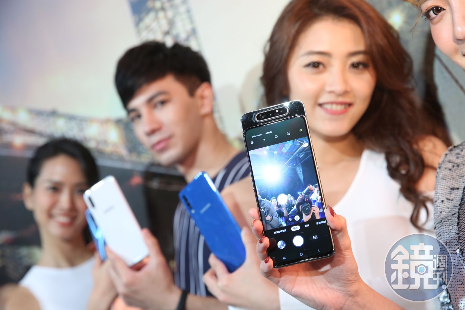 尤其是推出首款翻轉鏡頭智慧型手機Galaxy A80,三星透露,這是專為直播活躍族群所打造,前後鏡頭皆使用同一組3鏡頭,包含4,800萬像素的主鏡頭、3D景深鏡頭、超廣角鏡頭,讓消費者自拍也不必犧牲畫質。