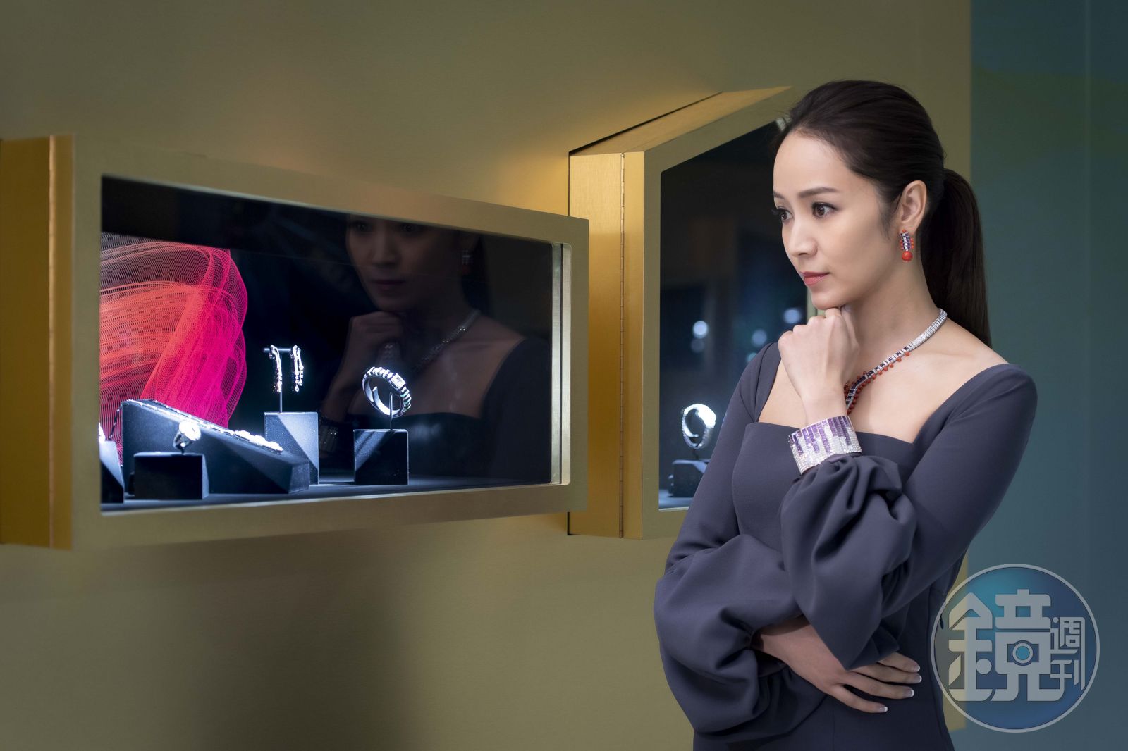 可依單獨配戴的美洲豹項鍊與胸針。約NT$49,700,000(卡地亞提供)提到家庭,她笑:「先生其實不管我的穿著,反而兒子好嚴格,連牛仔褲上有破洞都不行,因為他總是會很擔心說『會有別人看妳』,我都得安慰他,不會有人看媽媽啦!不過他很能欣賞珠寶喔!我的美洲豹系列如果很久沒有戴出來,他還會問我,豹呢?」