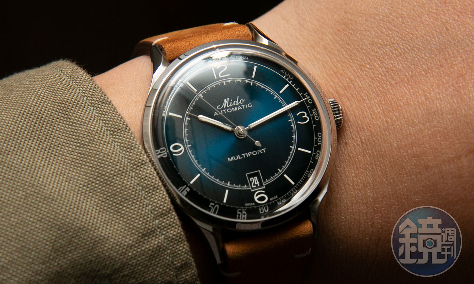 在去年推出復刻錶受到好評後,今年美度再推出全新的Multifort Patrimony,以歷史上的脈搏錶為靈感,呈現濃烈復古風格。漸層色面盤上有太陽放射紋,搭配縝密的刻度裝飾,雖然僅為大三針加日期視窗功能,卻有相當豐富的視覺效果。另一方面,不管是分針或秒針造型都經過挑選,重現歷史老味,而且這款作品還使用老式Logo,並裝配箱型藍寶石水晶鏡面以及干邑色復古牛皮錶帶,都讓這款作品加分不少。雖然是老式風貌,但尺寸來到40mm,符合現代配戴的習慣。錶款裝載Cal. 80自動上鏈機芯,動力儲存達80小時,有三種配色可供選擇,定價NT$26,700。