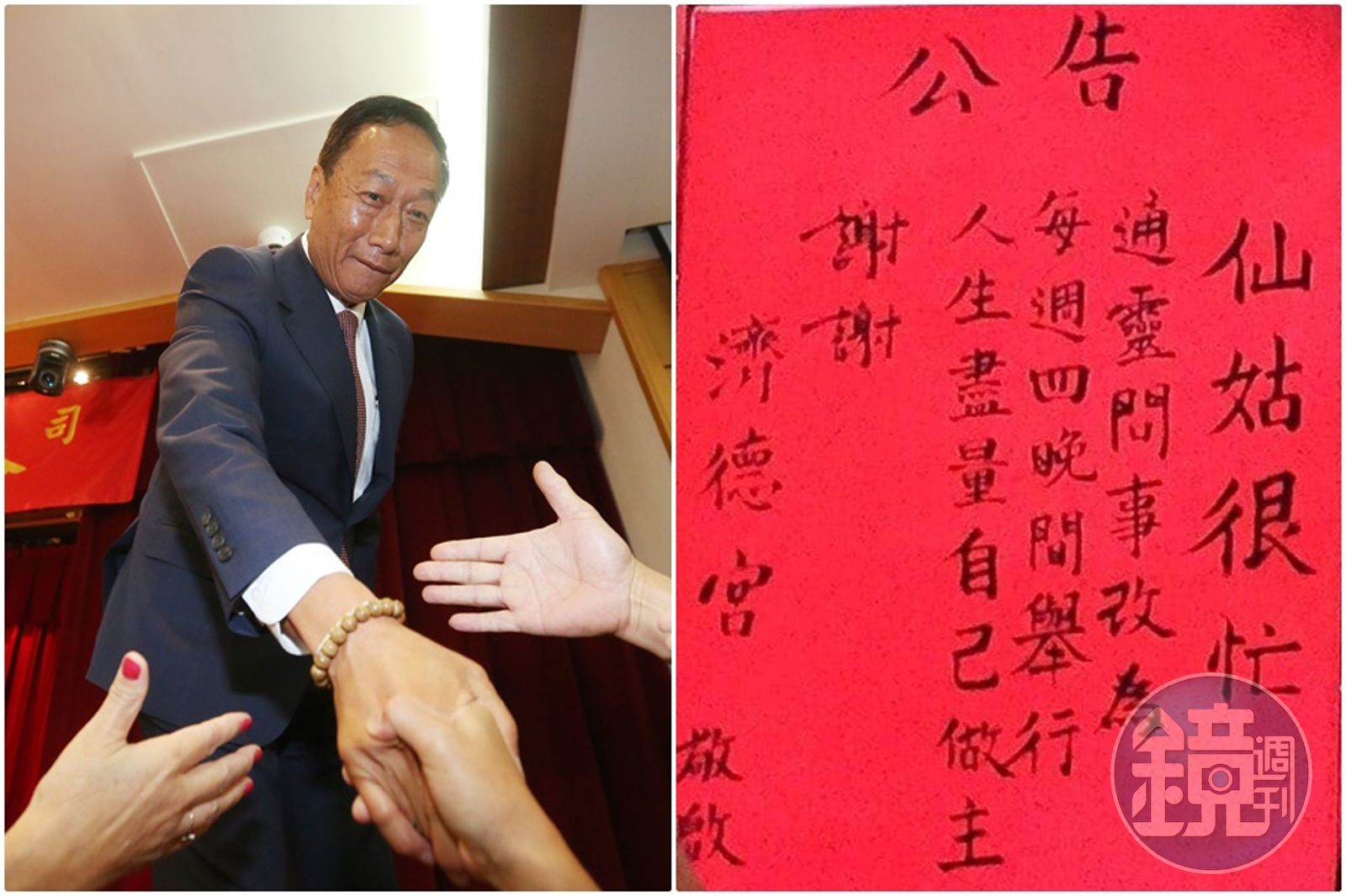 郭台銘昨參拜完新北市板橋慈惠宮後表示,這幾天媽祖託夢,叫他一定要為人民出來做一些事情,並宣布參加國民黨總統初選,強調不願意接受徵召。