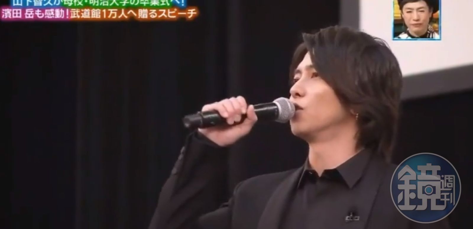 山下智久2008年畢業於明治大學商學院,近日他為母校進行畢業典禮致詞,他分享自己當時一邊讀大學一邊進行演藝工作的心境,認為人生就是不停的做選擇和下決定,也鼓勵畢業生,若人生出現多於兩個困難選項的時候,希望他們會選擇當中最困難的一個。