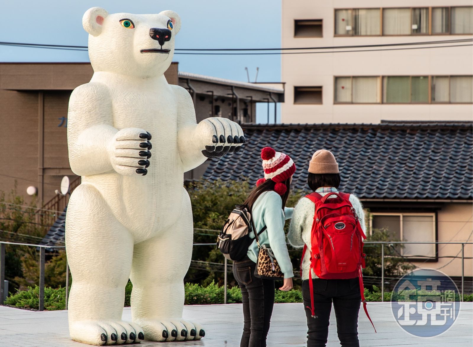 三層樓的「富山縣美術館」,考量地震會引起海嘯,一樓並不放置展示品:二樓館內收藏畢卡索、米羅等20世紀初藝術巨匠作品外,我則喜愛館內日本雕刻家三澤厚彥《ANIMALS》系列作品,尤其是戶外廣場3隻大小白熊,早已成了遊客間熱門的合照作品。