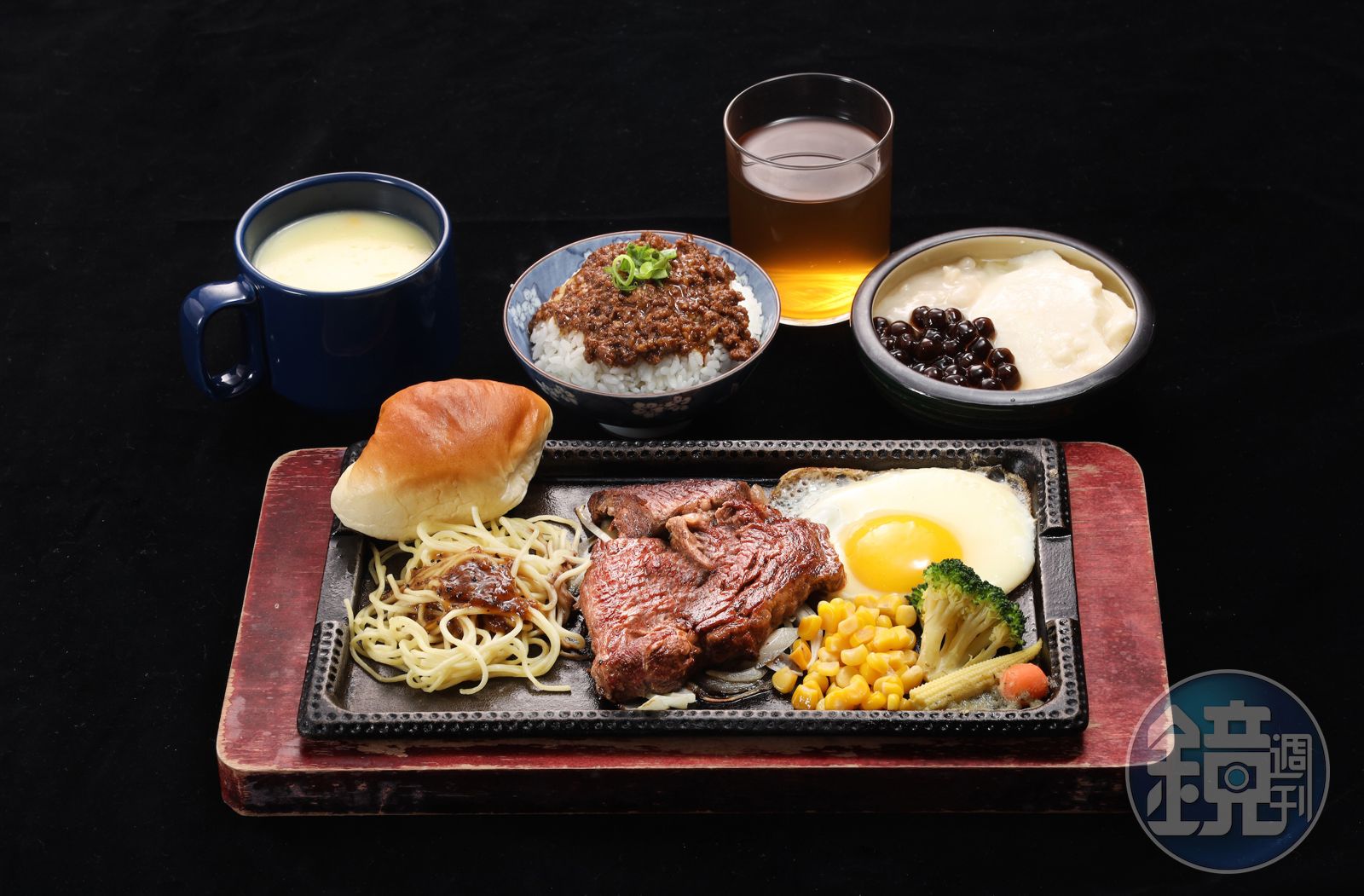 附餐倒是很接地氣,有夜市牛排的親切感,濃稠的玉米湯、夠甜的冬瓜茶、花生粉圓豆花,還有一碗用和牛絞肉做成的滷肉飯或咖哩飯,吃起來比一般平價牛排附餐精緻許多,也相當夠味,讓人會想續碗,有點搶牛排風采。