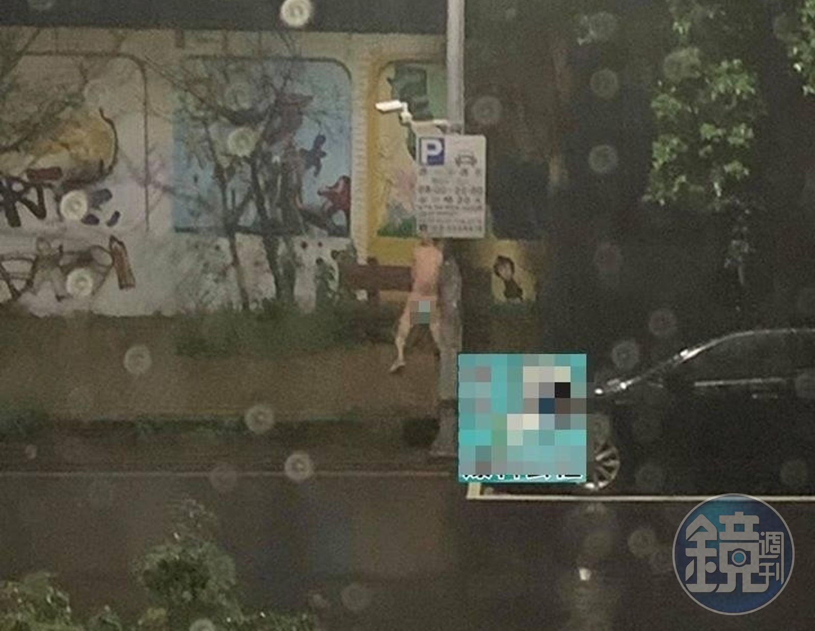 1名網友在臉書社團「新竹爆料公社」匿名PO文,指該名裸體哥趁著大雨滂沱時,跑到新竹市區某所國中,不畏路人眼光,對著板凳做出前後抽插的「空幹」猥褻動作,有時車子經過,還會化身「進擊的巨人」,快速躲藏,加上他屁股一直動,顯得相當詭異,又可笑;最後,一部大貨車經過,才引起裸體哥注意,立刻拔腿狂奔,逃離現場。
