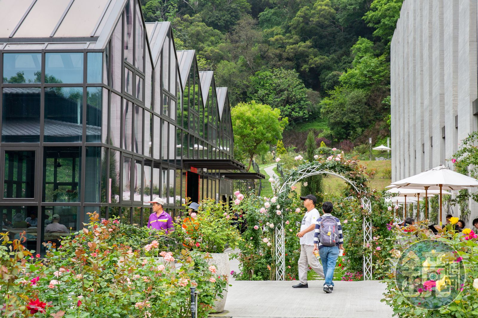 園區佔地5公頃,只有一棟綠建築及玻璃屋,其他地方則種植了來自世界各地的600多種玫瑰,從入口的迎賓大道開始,兩旁的樹玫瑰、祕密花園、瀑布、玫瑰綠廊,光是走完這個僅佔十分之一的區域,就不知花了多久的時間。